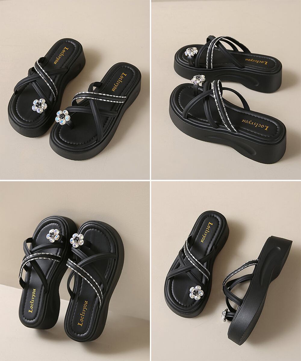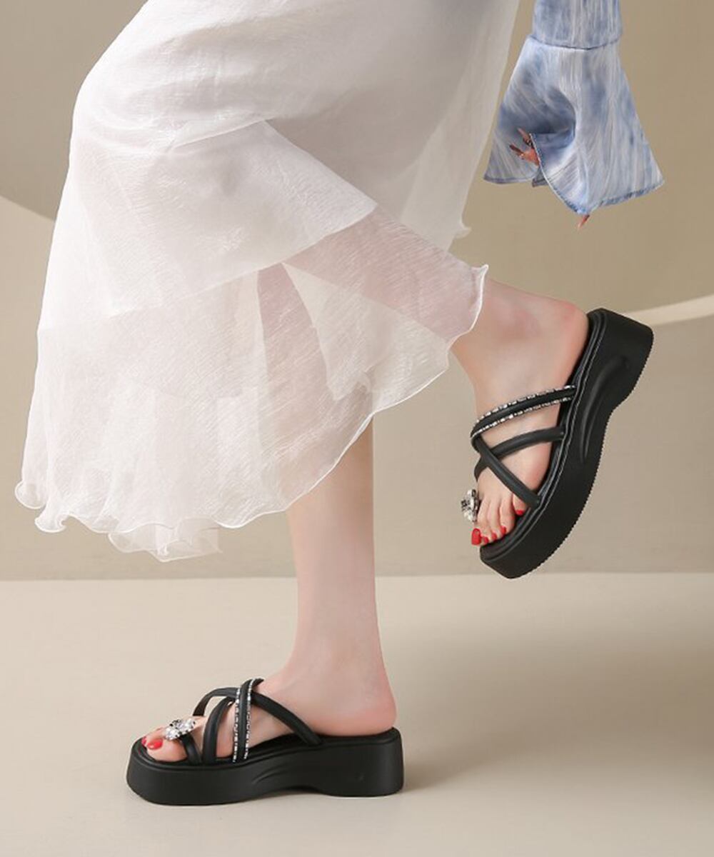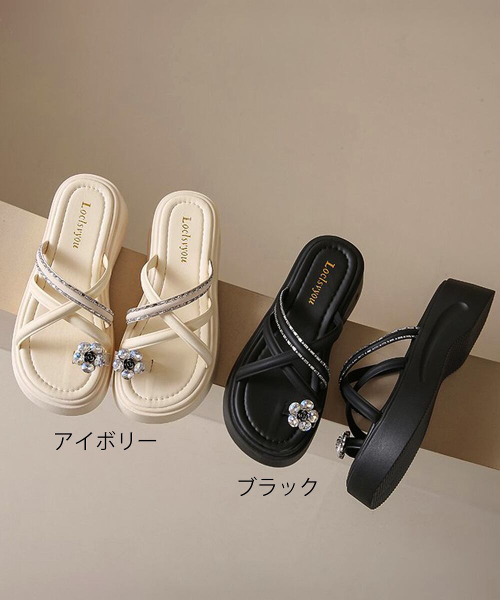 【日本倉庫即納】 クロスストラップ厚底トングサンダル夏美脚
