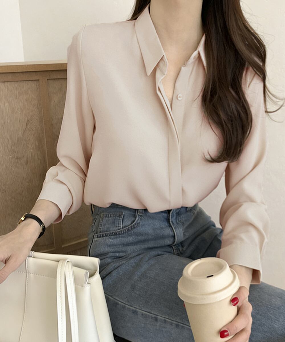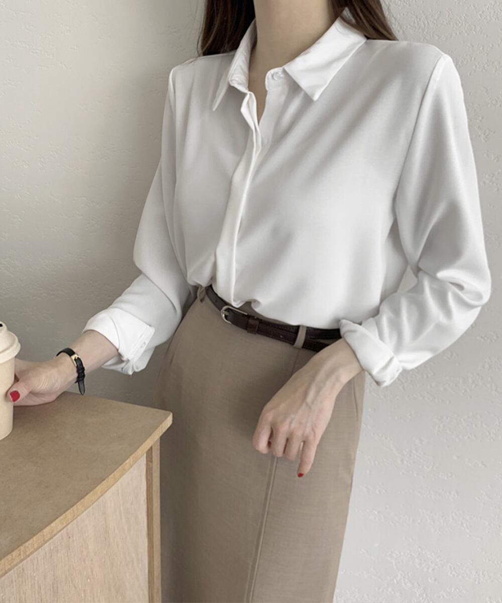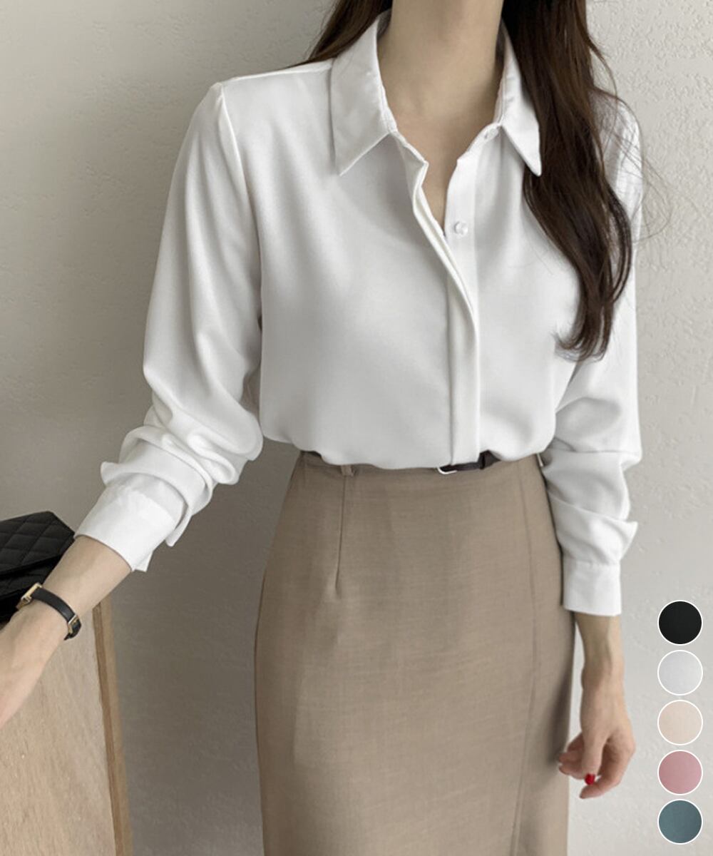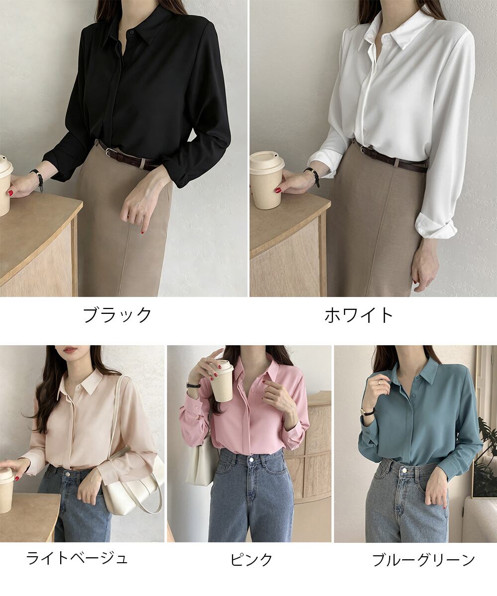 【日本倉庫即納】 シャツブラウス 隠しボタン ブラウス長袖