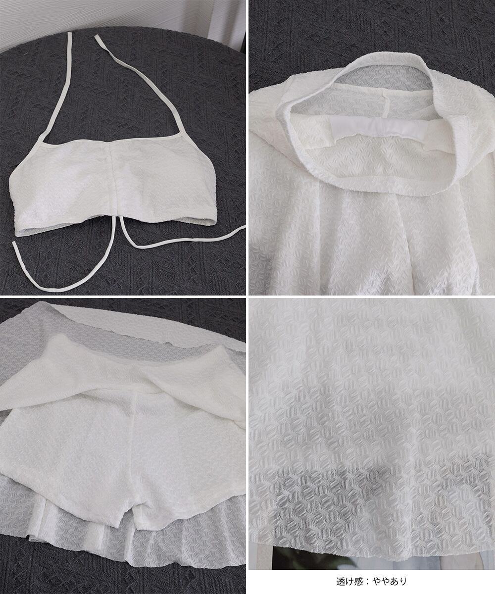 ホルターネックトップスとフレアスカートを組み合わせたセパレート水着セット。