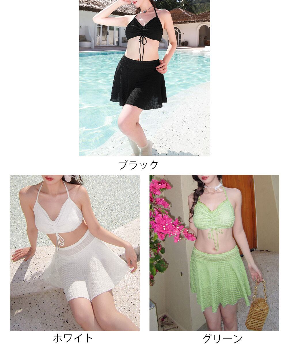 ドローストリング 大人可愛いセパレート水着 インナーパンツ一体型フレアスカート 水着上下2点セット 体型カバーママ水着