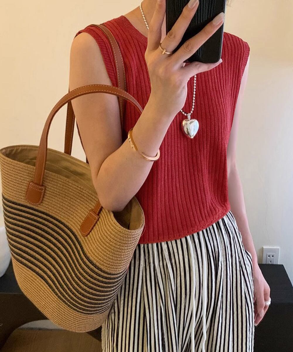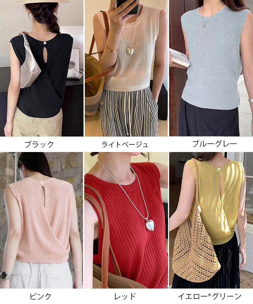 【日本倉庫即納】 サマーニットタンクトップ 背中開き 夏服