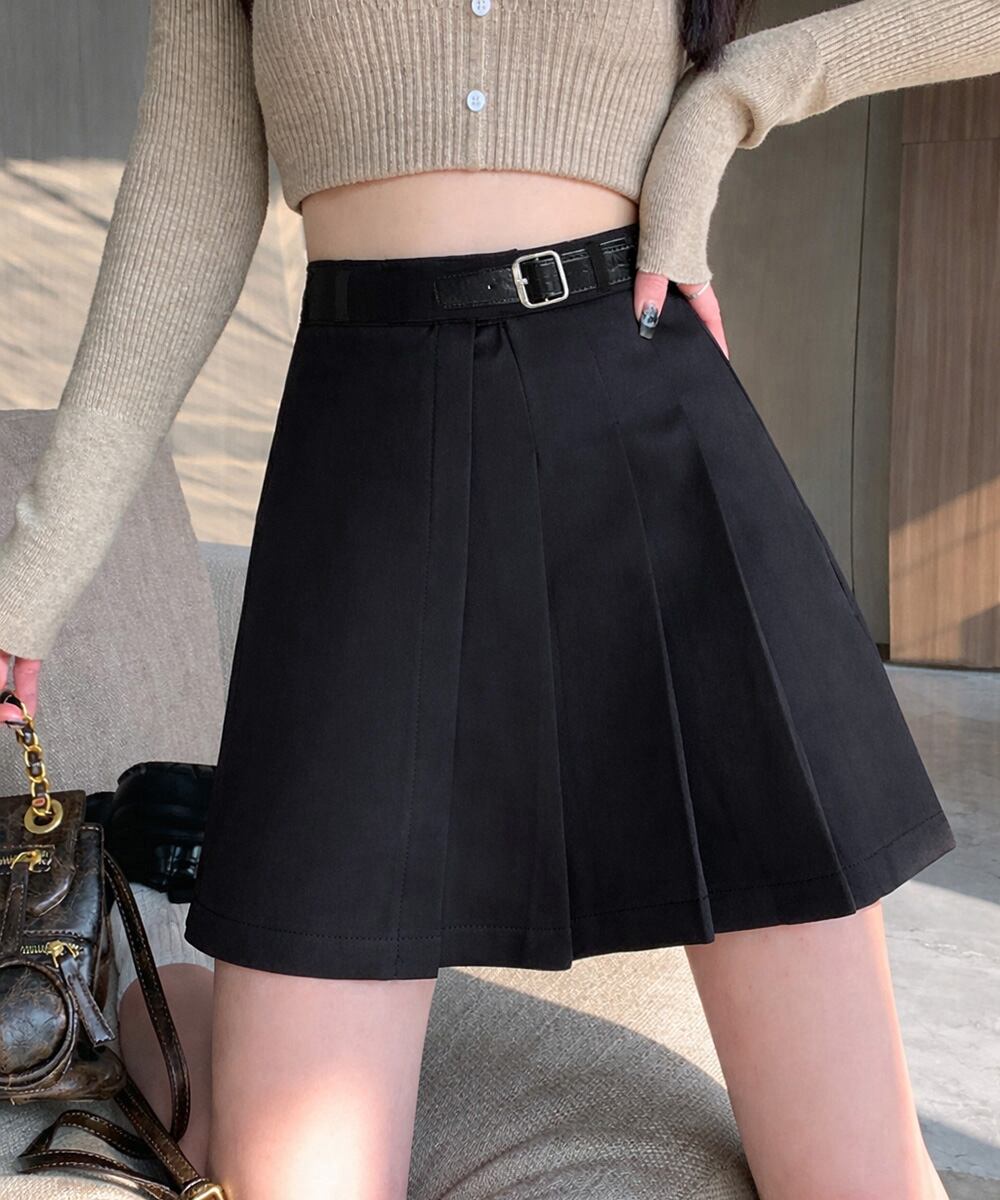 プリーツデザインが魅力のハイウエストミニスカート。