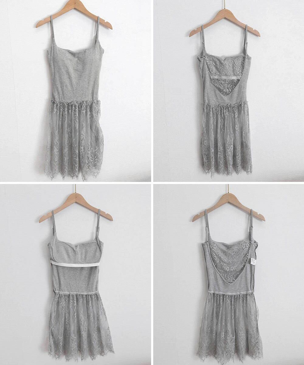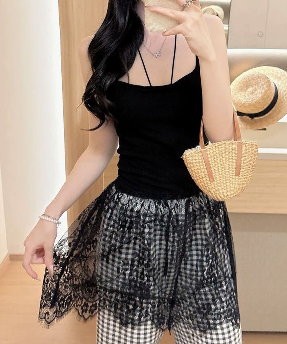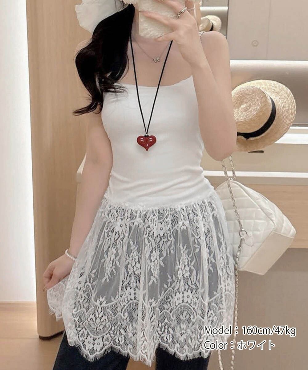 韓国っぽいムードが漂う、背中開きレースドッキングキャミソール。