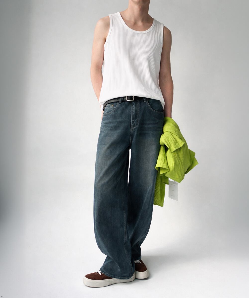 縦リブ素材で通気性がよく、一枚でもレイヤードでも映える韓国風トレンドアイテム。