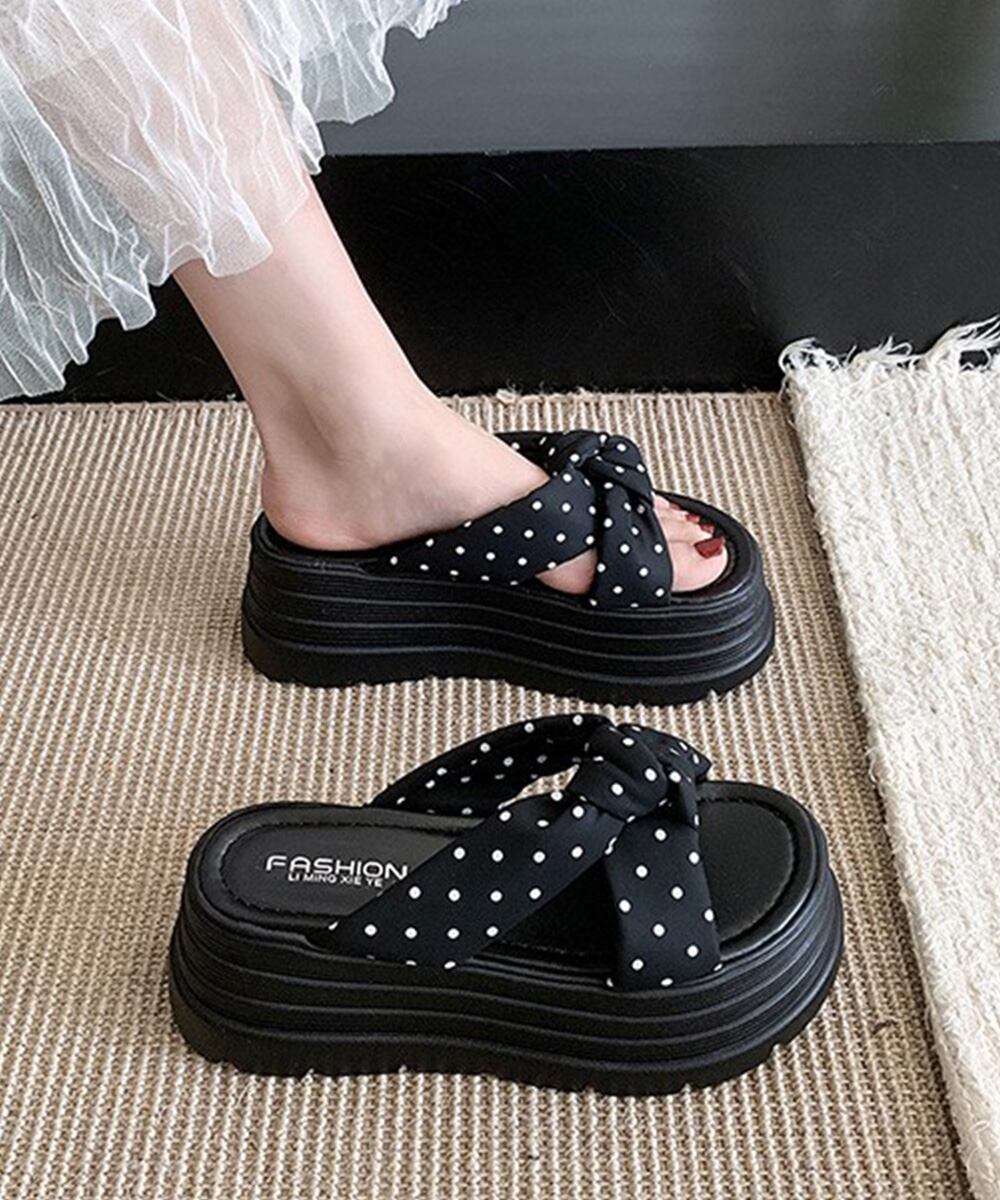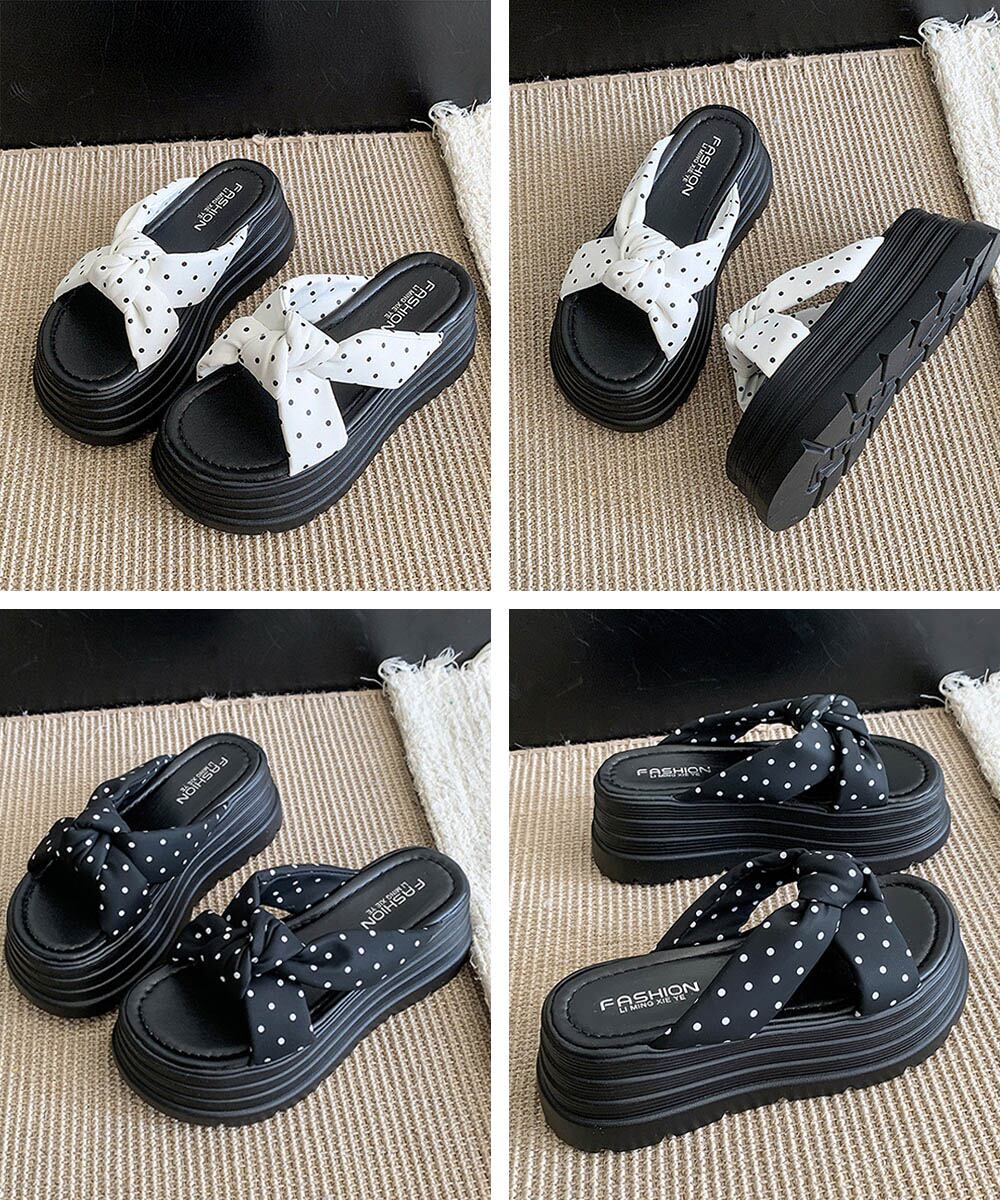 【日本倉庫即納】 ドット柄リボン厚底サンダルレディース美脚