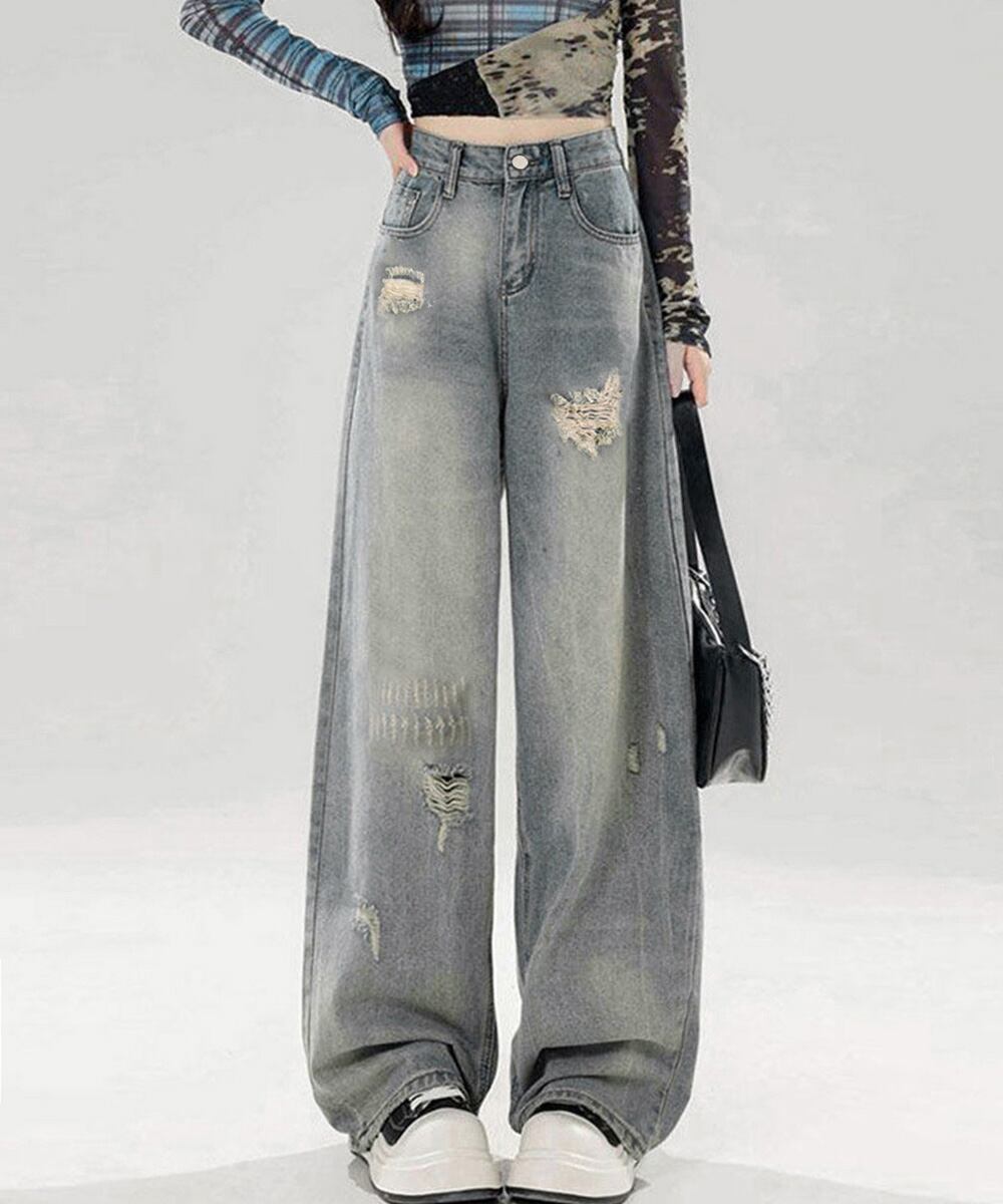 【日本倉庫即納】 ダメージデニムパンツ レディースジーンズ