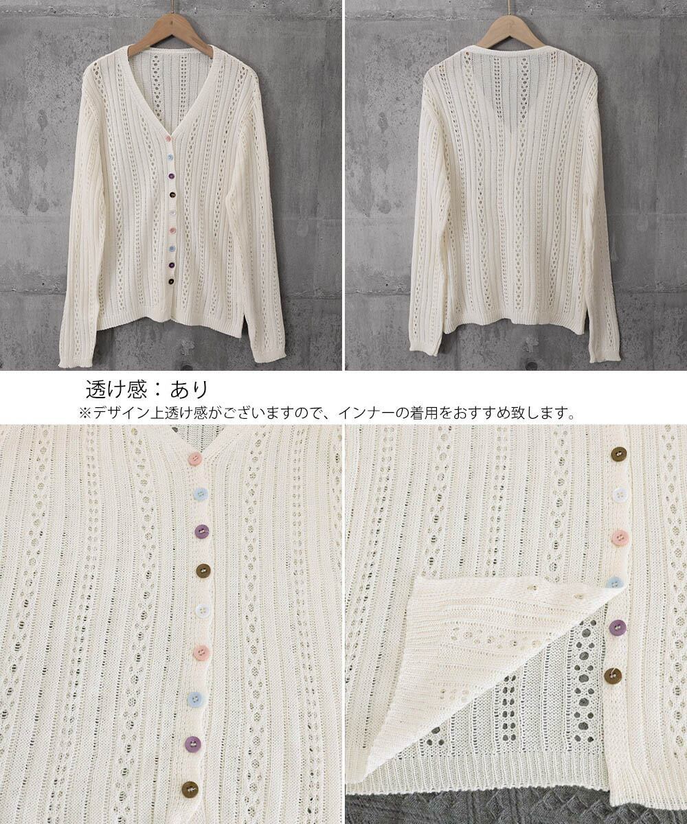 レディース カラーボタンパンチングニットカーデ 大人可愛いサマーニット羽織りきれいめ春夏服薄手 無地 紫外線対策冷房対策