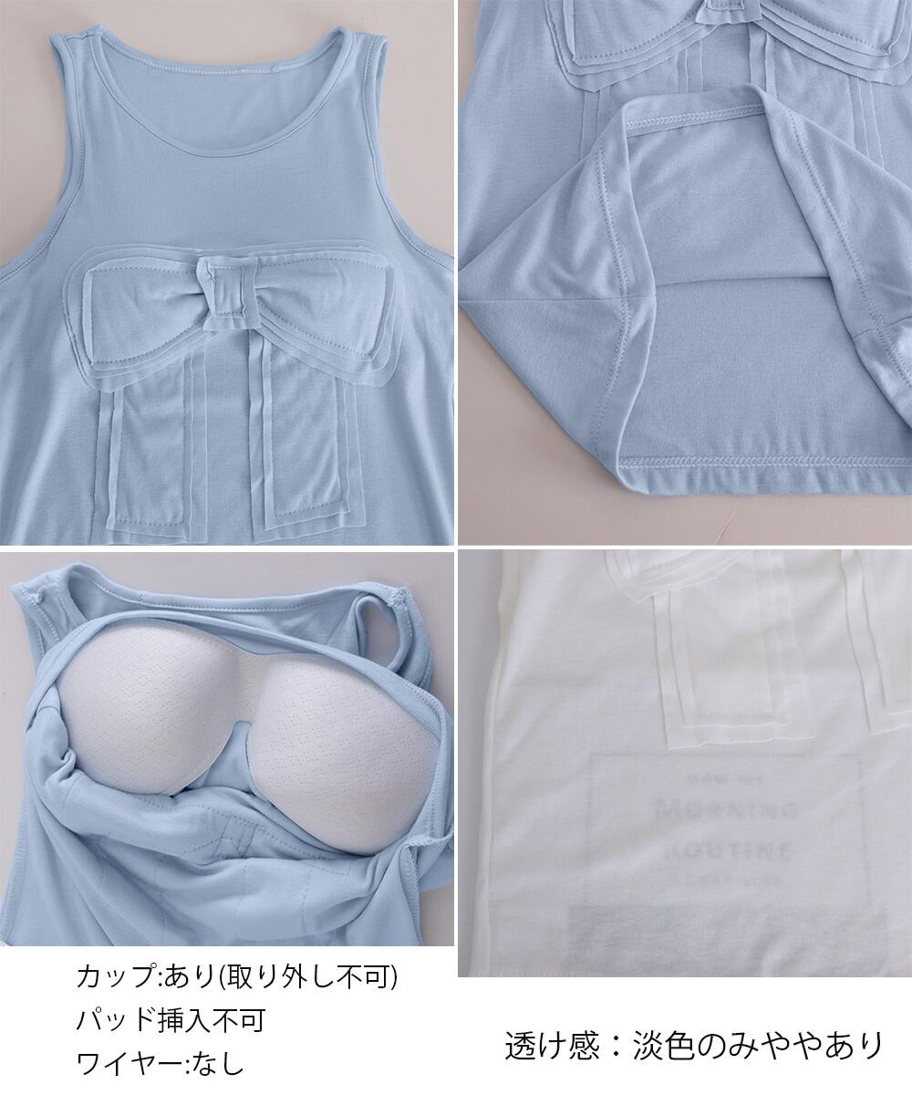 【日本倉庫即納】 リボン付きタンクトップ カップ付きタンク