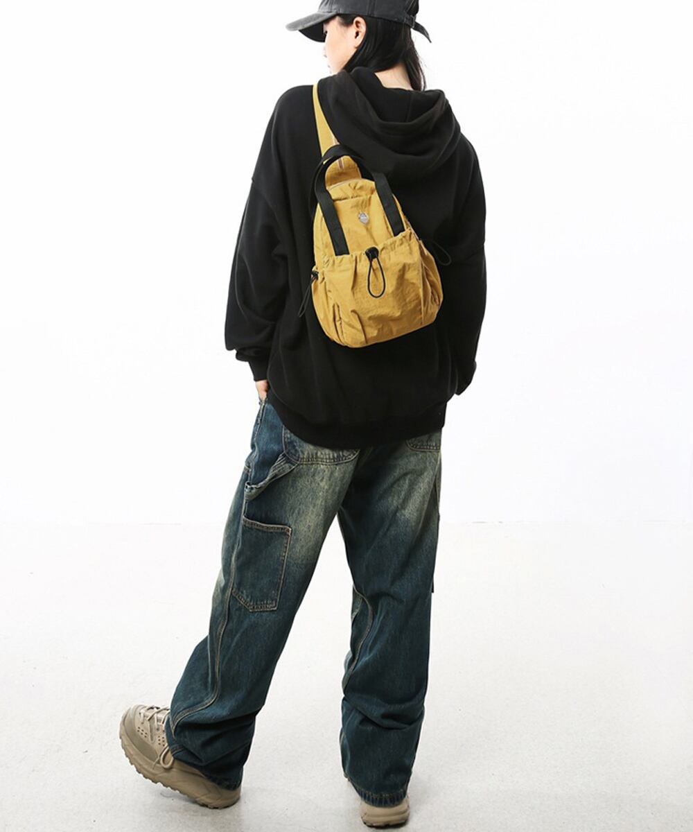 外ポケット+ドロスト(ギャザー)デザインで、小物の出し入れがしやすい。