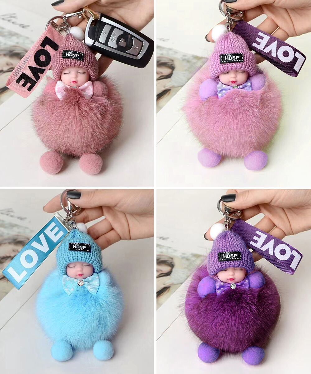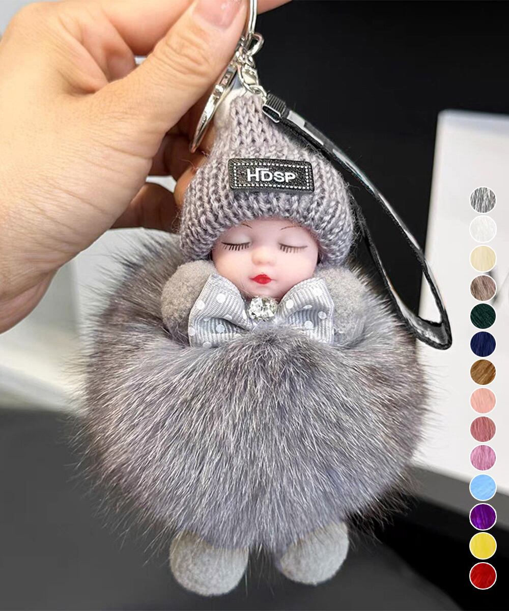 韓国風 ふわふわドールチャーム ぬいぐるみチャーム もこもこ おやすみ赤ちゃん飾りバッグアクセサリー ファーチャーム人気