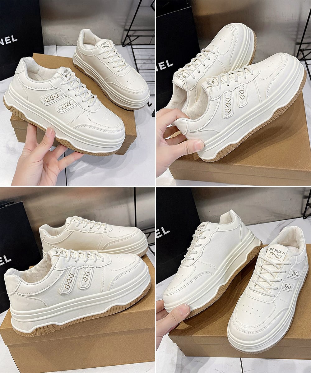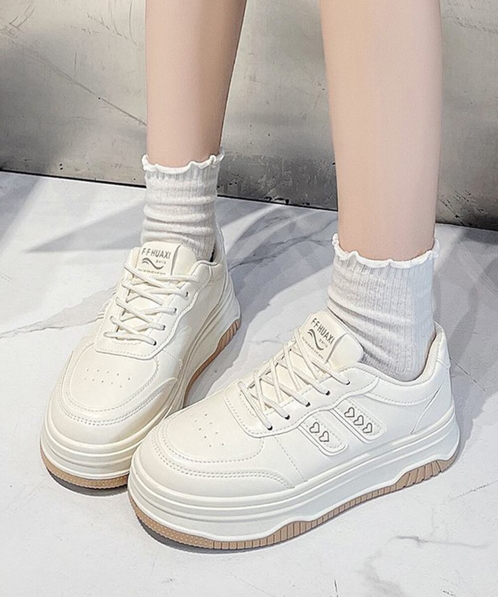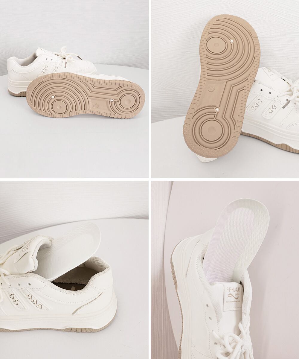 ハートモチーフ ボリュームソールスニーカー レディース カジュアルくつ 通勤通学 大人可愛いオールシーズン靴 歩きやすい