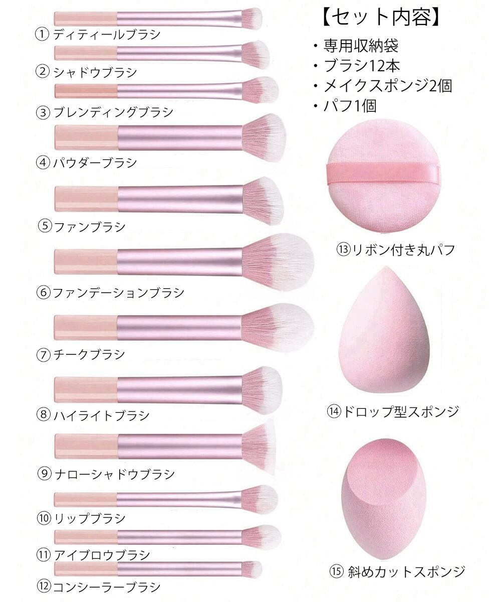 【セット内容】専用収納袋+ブラシ12本+メイクスポンジ2個+パフ1個