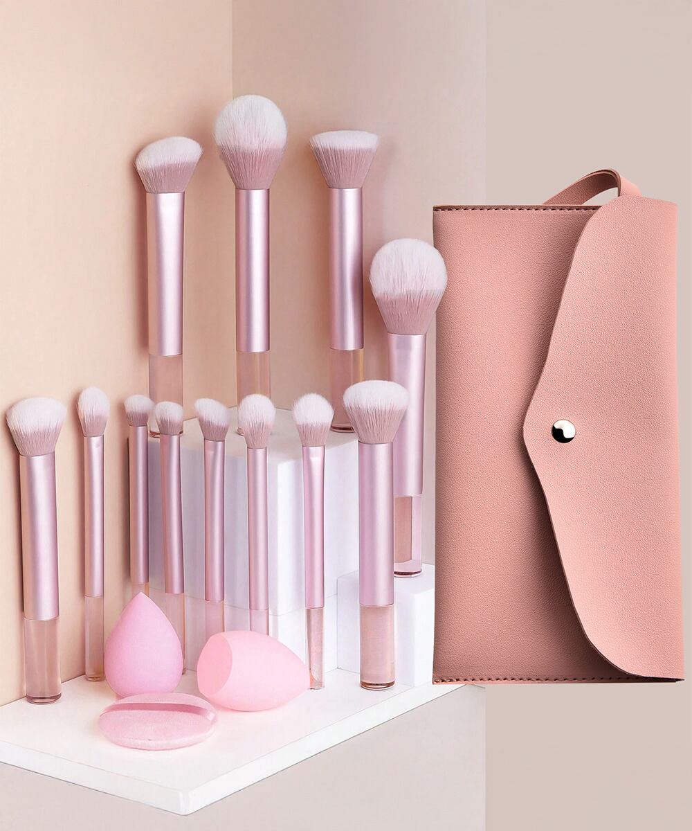 プロ仕様のメイクブラシ12本にスポンジ&パフ、専用収納ケースが付いたフルメイク対応セット。