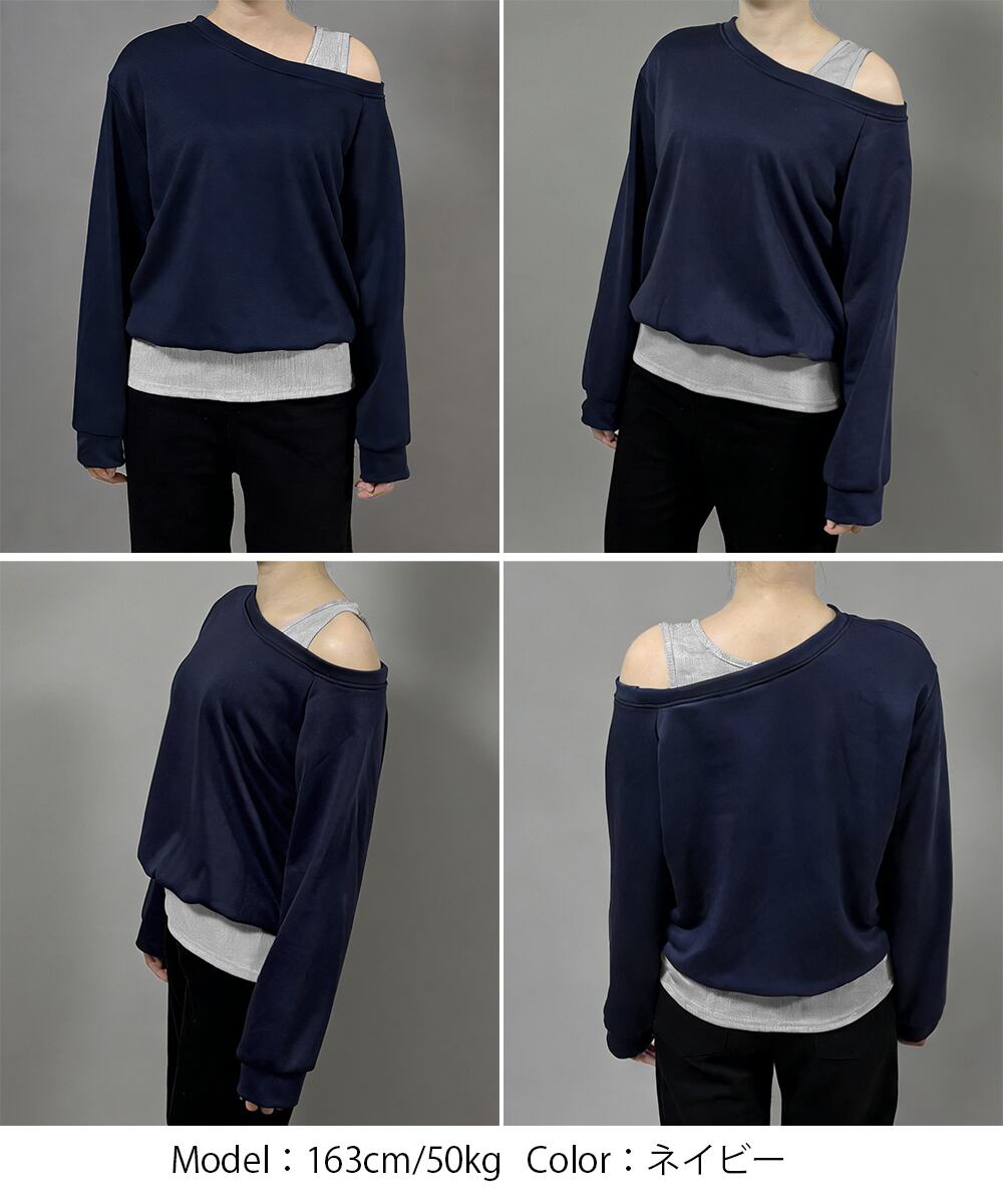 【日本倉庫即納】 レイヤード風スウェットワンショルダー秋服