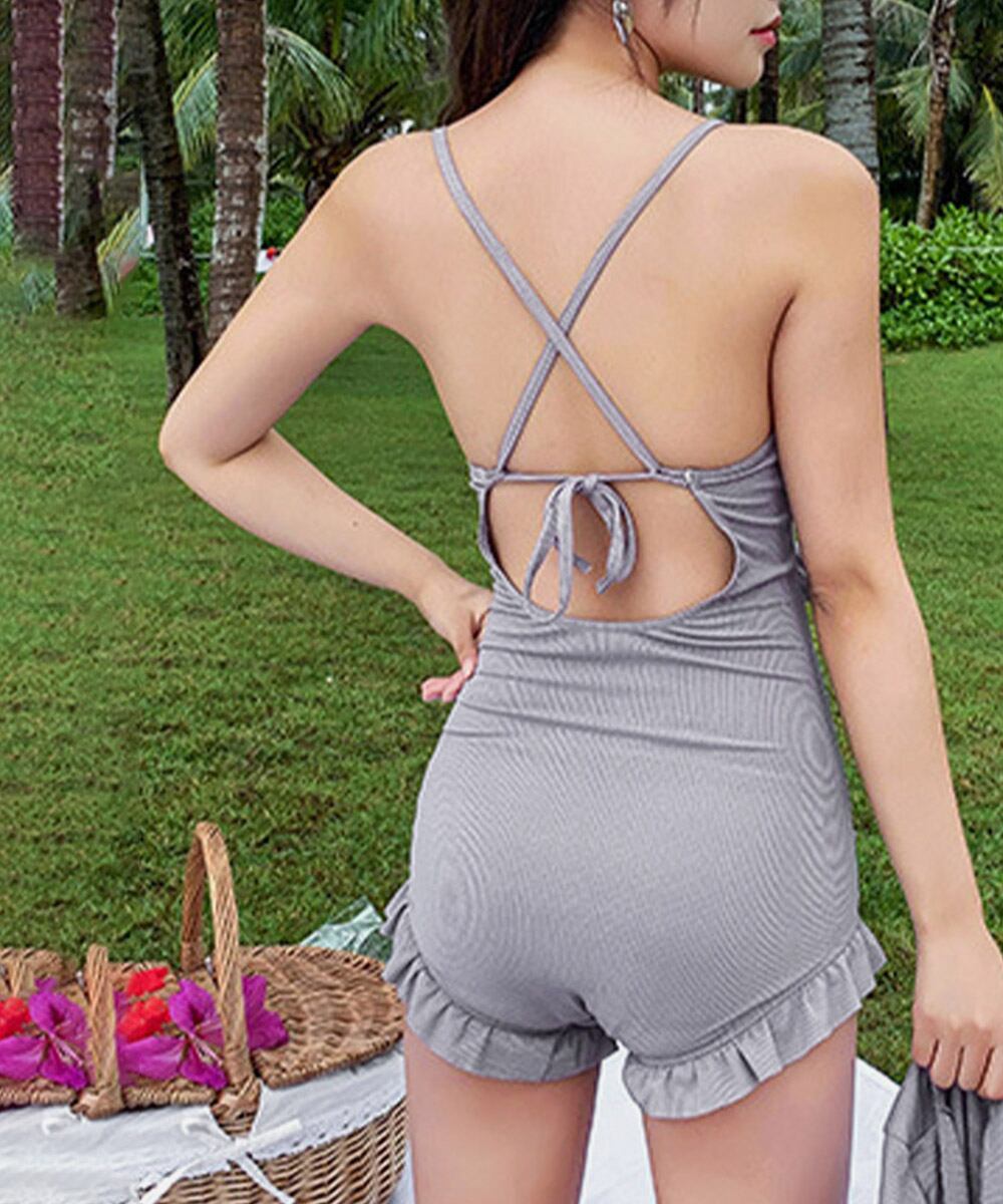 海水浴おしゃれ水着 背中見せ 水着無地 プール温泉海外旅行