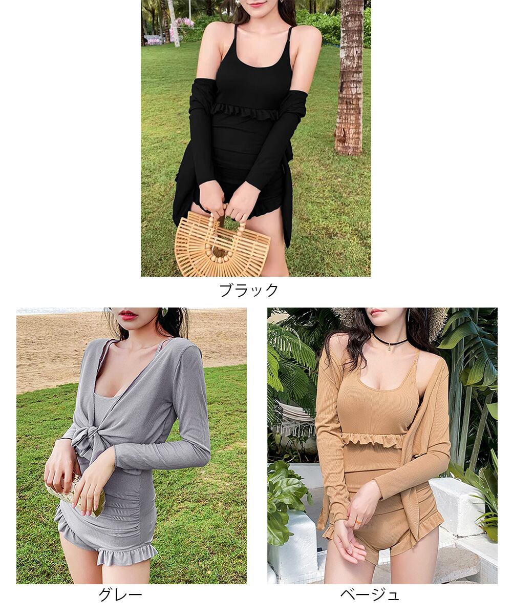 フリル付きスイムウェア クロスバックワンピース水着 カーディガン付き 水着2点セットアップ 着やせ 露出控えめ水着 夏海