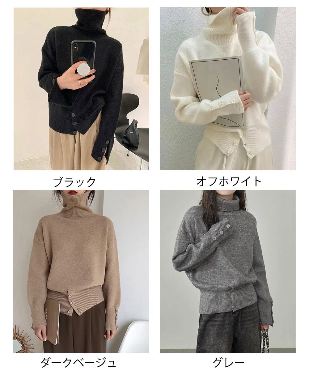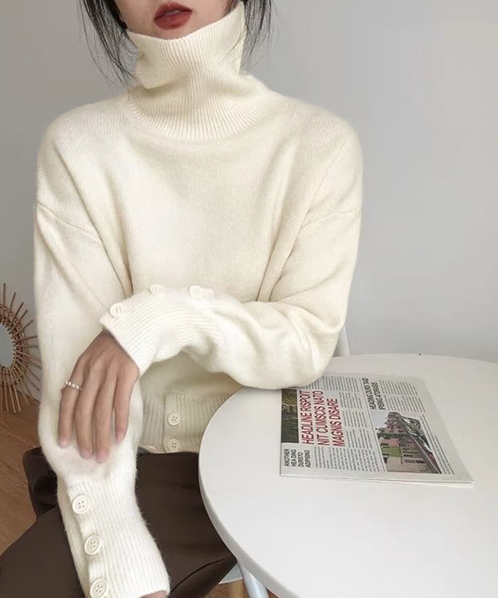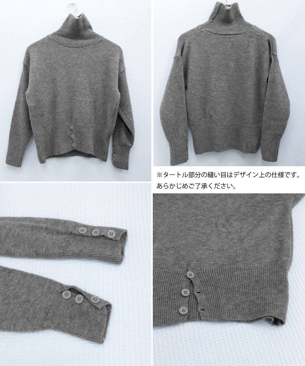 ボタンデザインがアクセントになったタートルネックニットプルオーバー。
