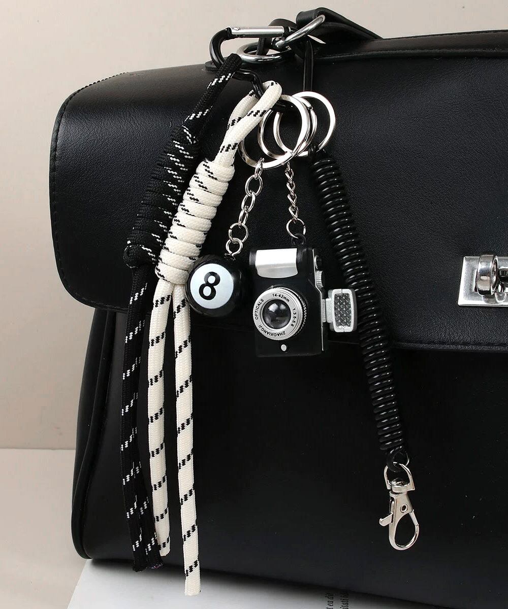 存在感のあるモチーフとコードデザインを組み合わせた、トレンド感あふれるキーホルダー。