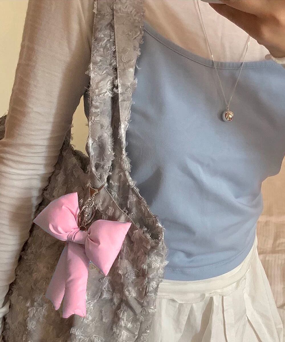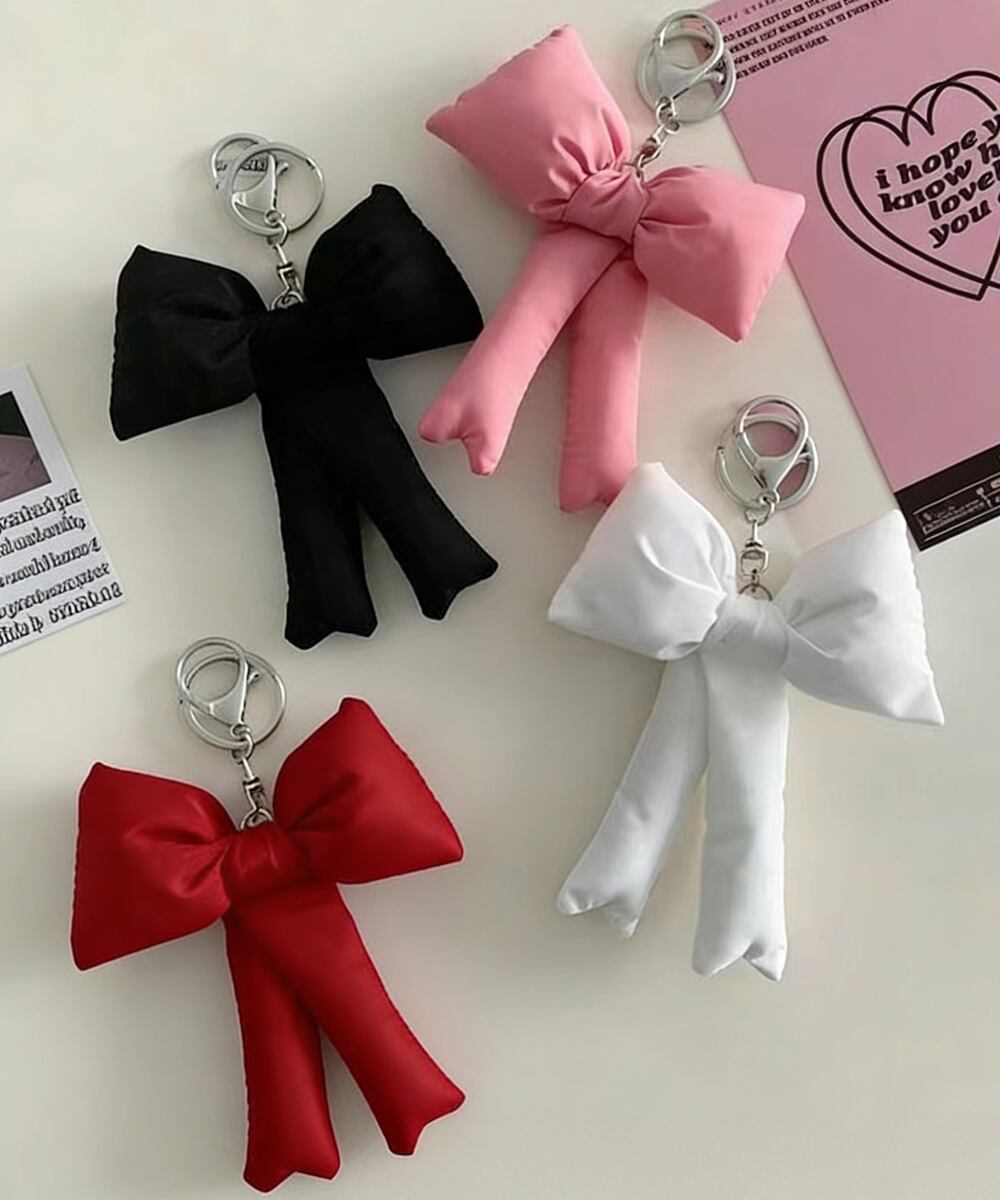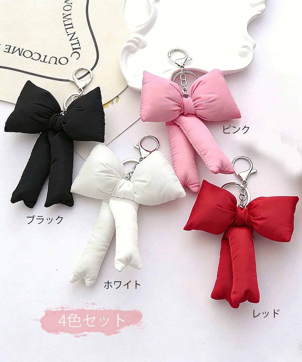 可愛さをプラスできる、ぷくぷくリボンの4色セットバッグチャーム。