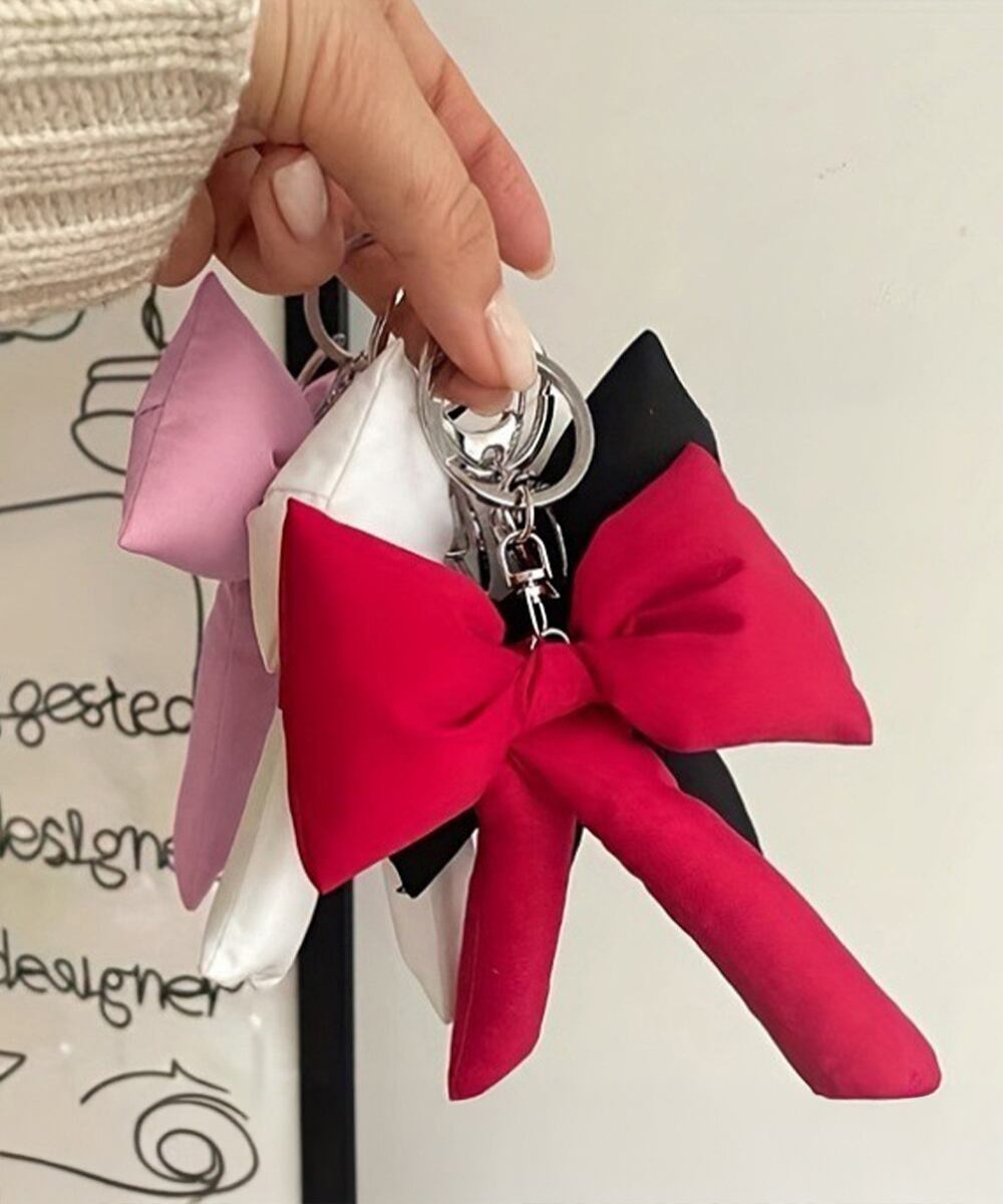 ぷっくりリボンキーホルダー ナスカン付き リボンキーリング 吊り下げバッグ用アクセサリー フェミニン 鍵やバッグ飾り小物