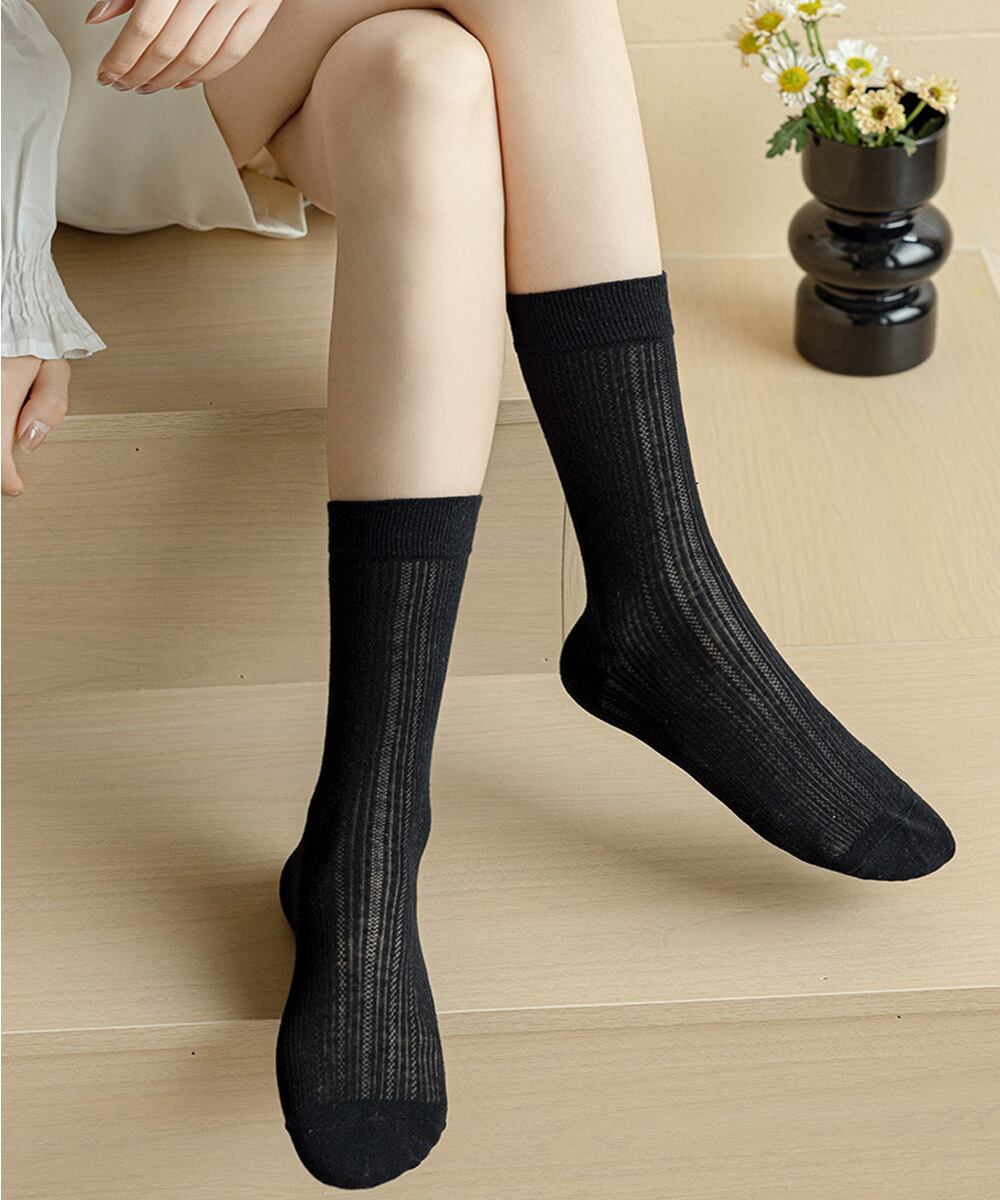 ミドル丈ソックスメッシュ 通気性 通勤通学クルーソックス 5 色セット シンプル かわいい靴下 ベーシックソックス 無地