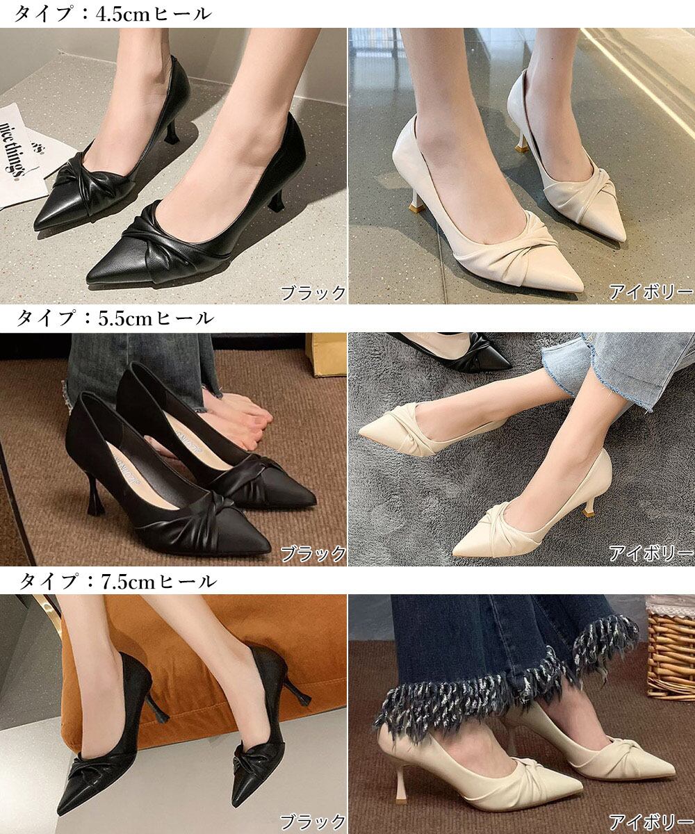 【日本倉庫即納】 ツイストパンプスヒール選べるシューズ美脚