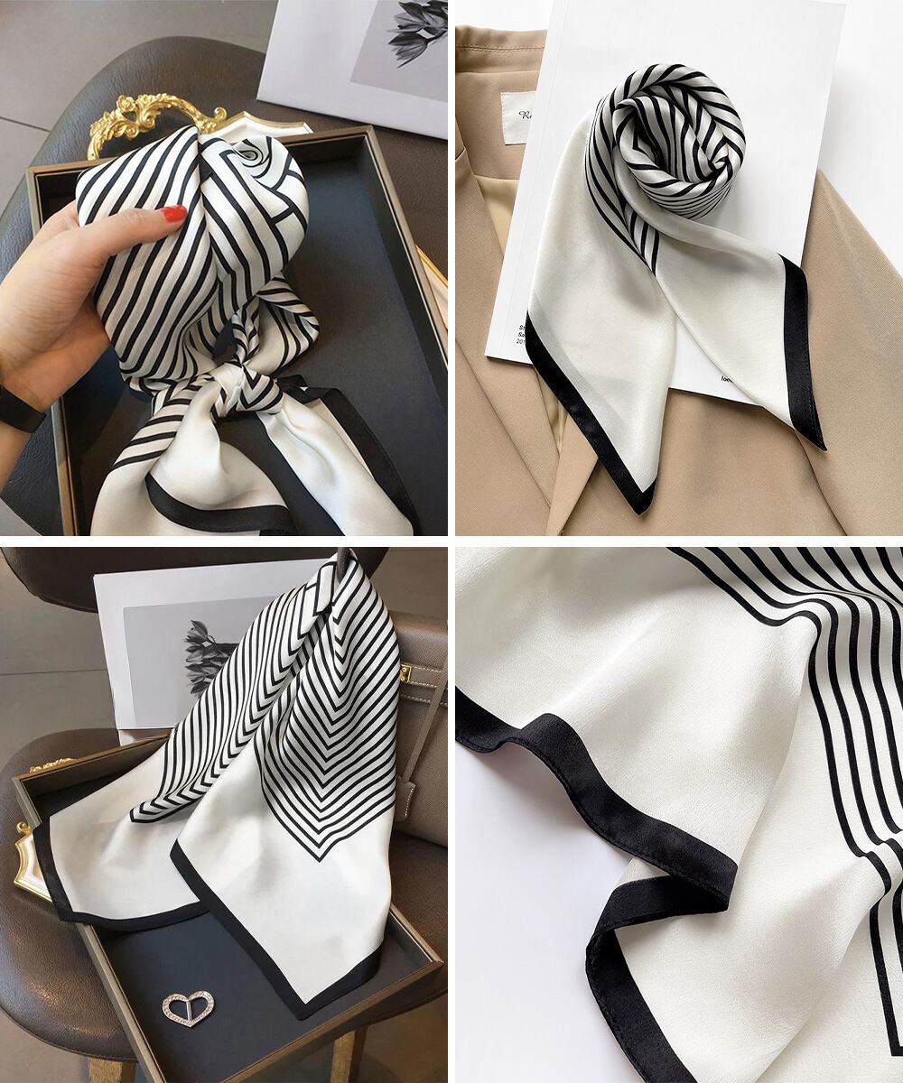 首元やヘアアレンジ、バッグに巻いて、カジュアルからオフィスまで幅広く活用できる。