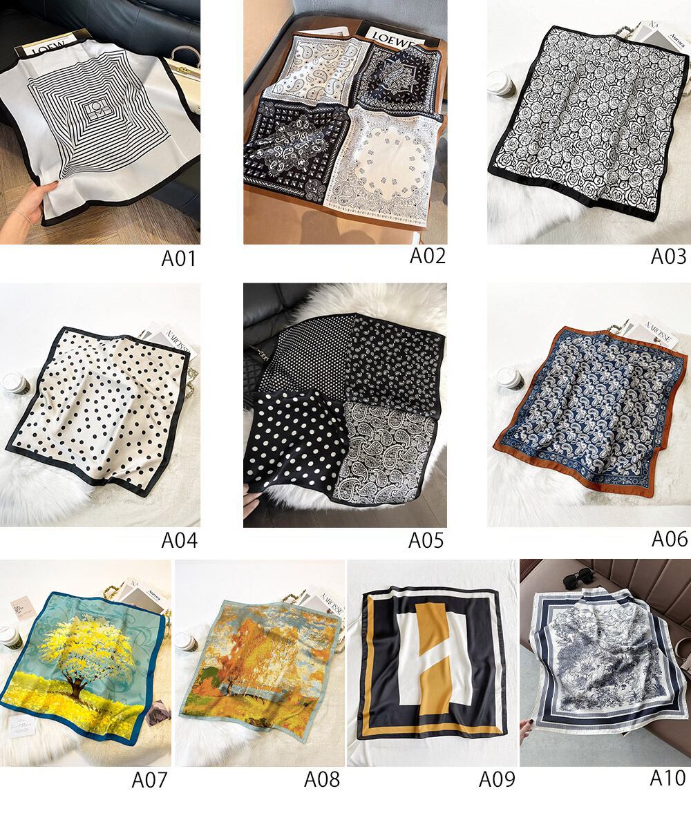 【日本倉庫即納】 スクエアスカーフ シルク調スカーフ 上品