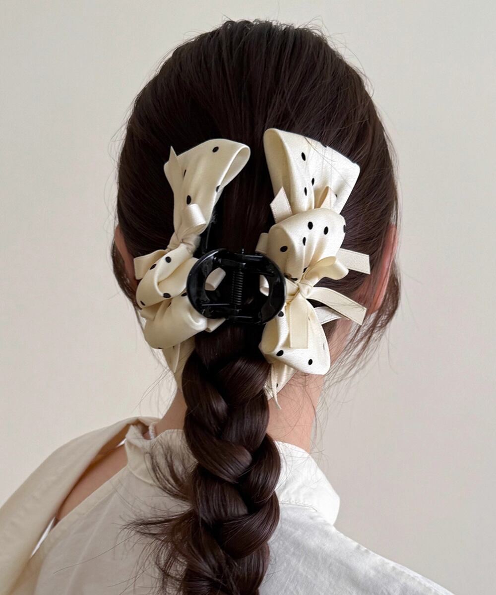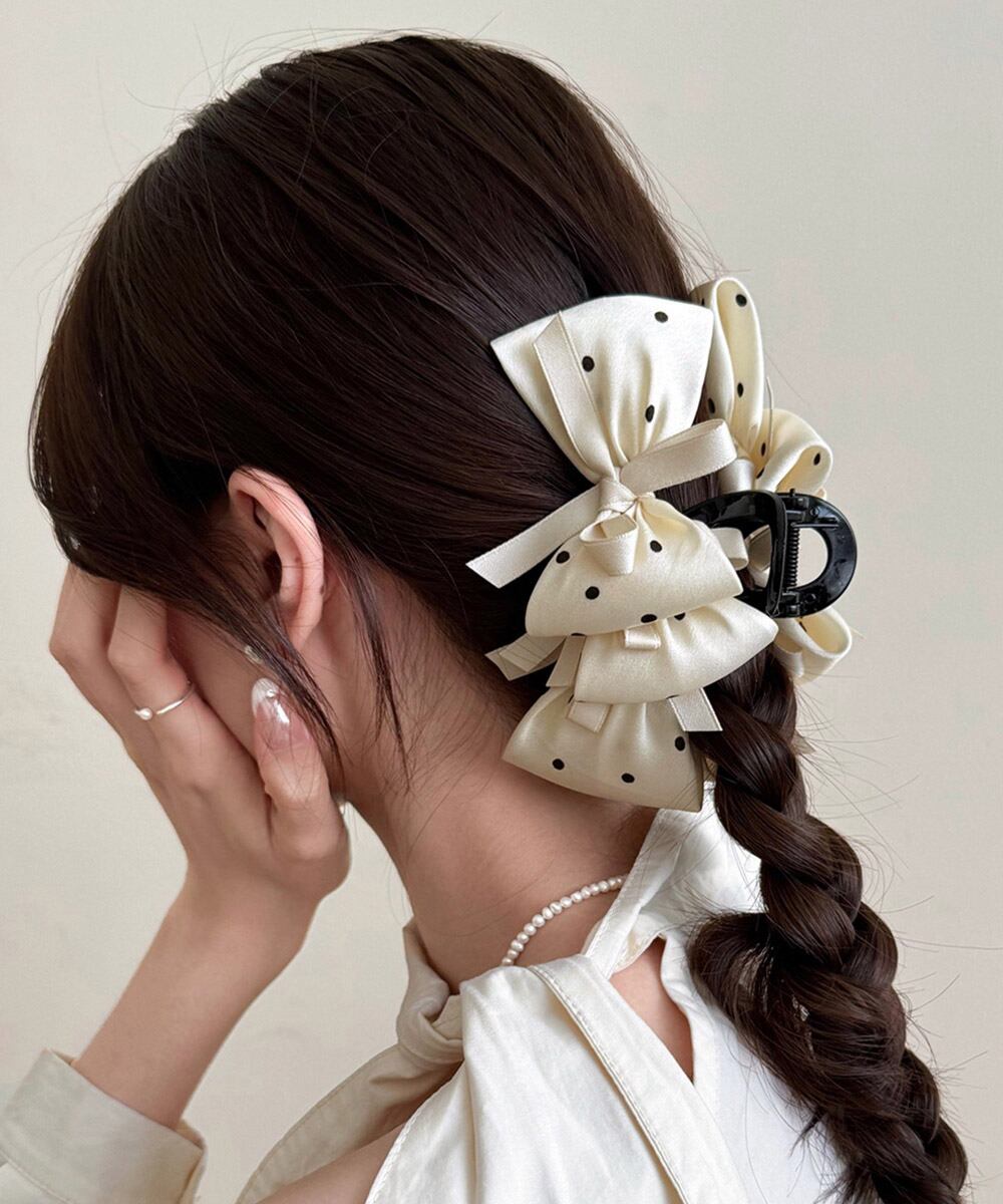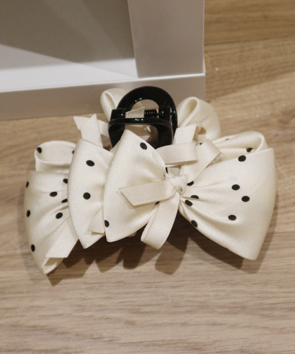 大きめのドット柄リボンが目を引くビッグリボンヘアクリップ。