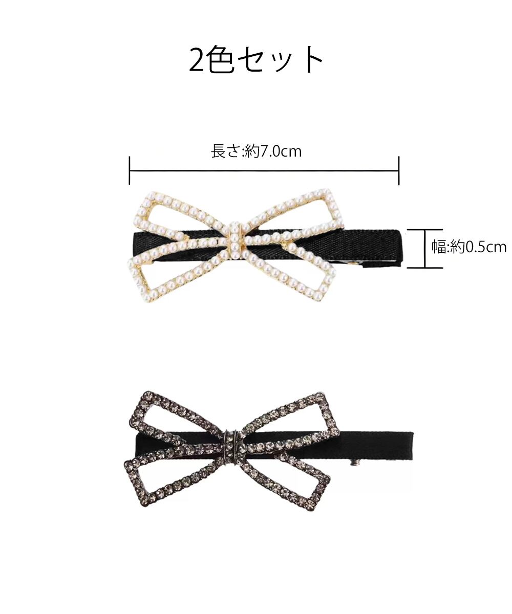 パールリボンピン きれいめ 前髪クリップキラキラ オシャレヘアアクセサリープチプラしっかり留まるヘアピン ビジュー髪飾り