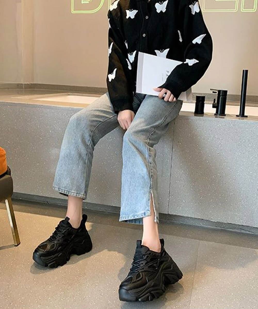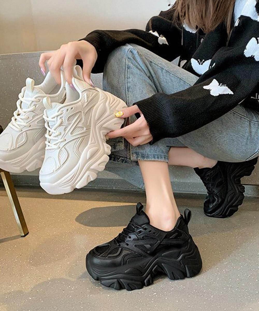ボリュームソールシューズ スポーティー 美脚厚底靴 疲れにくい カッコイイ 韓国風ダッドシューズ カジュアル靴 通勤通学