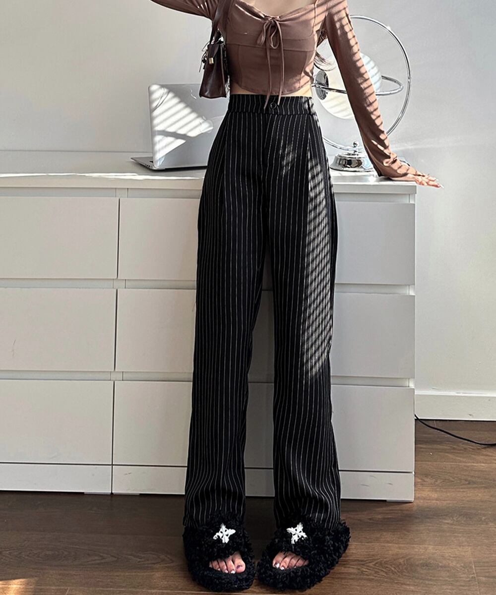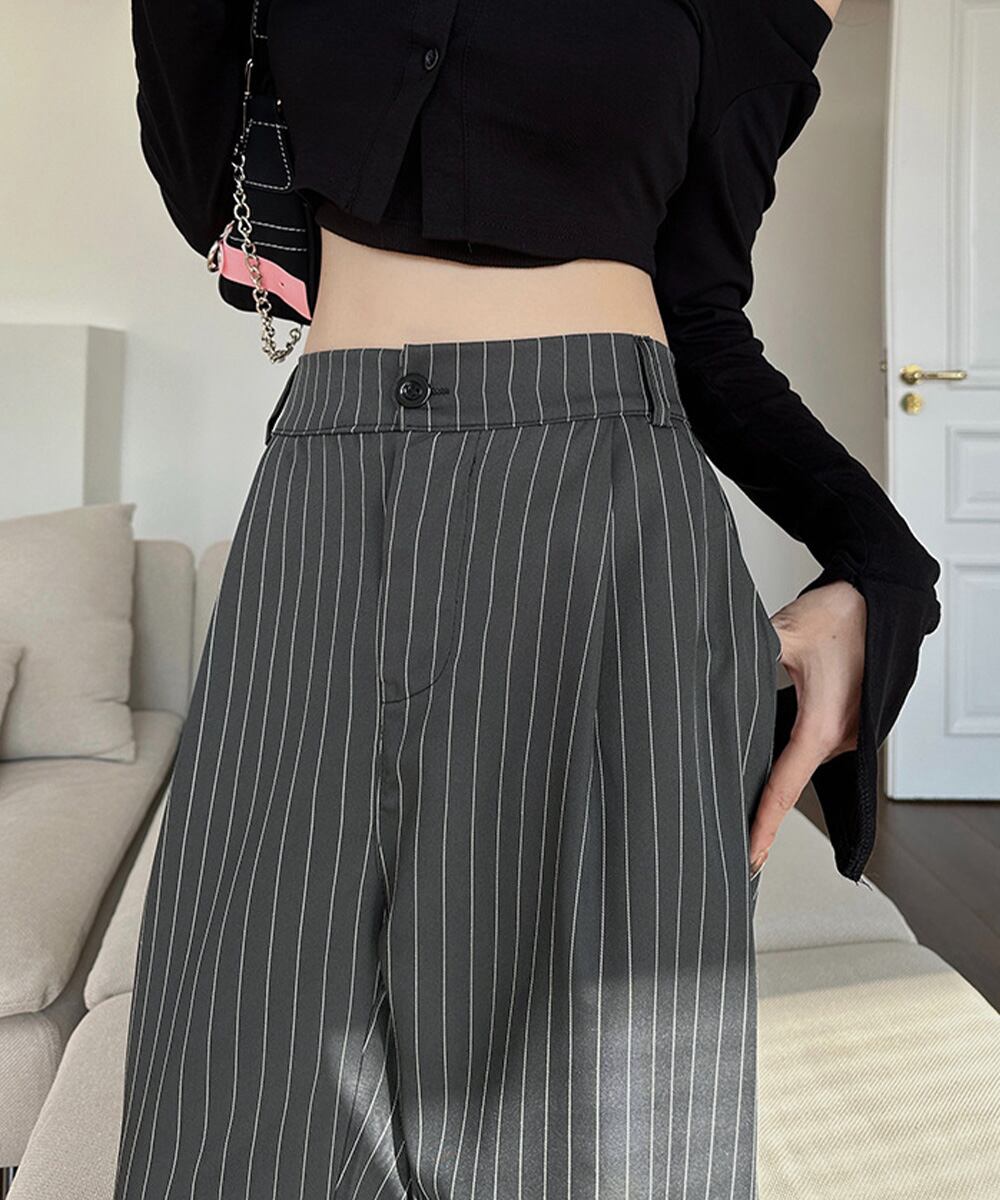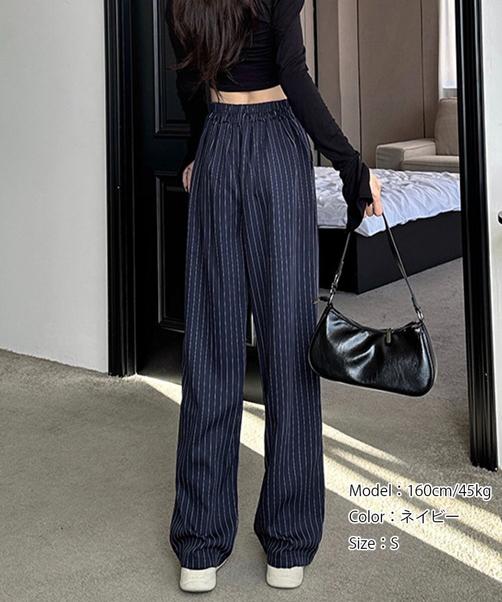 【日本倉庫即納】 ストライプワイドパンツ春夏秋ロングパンツ
