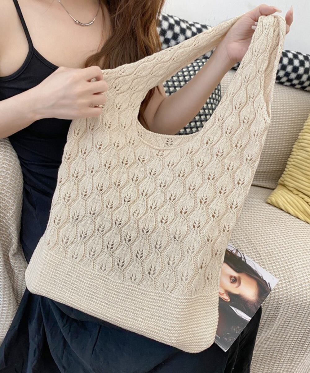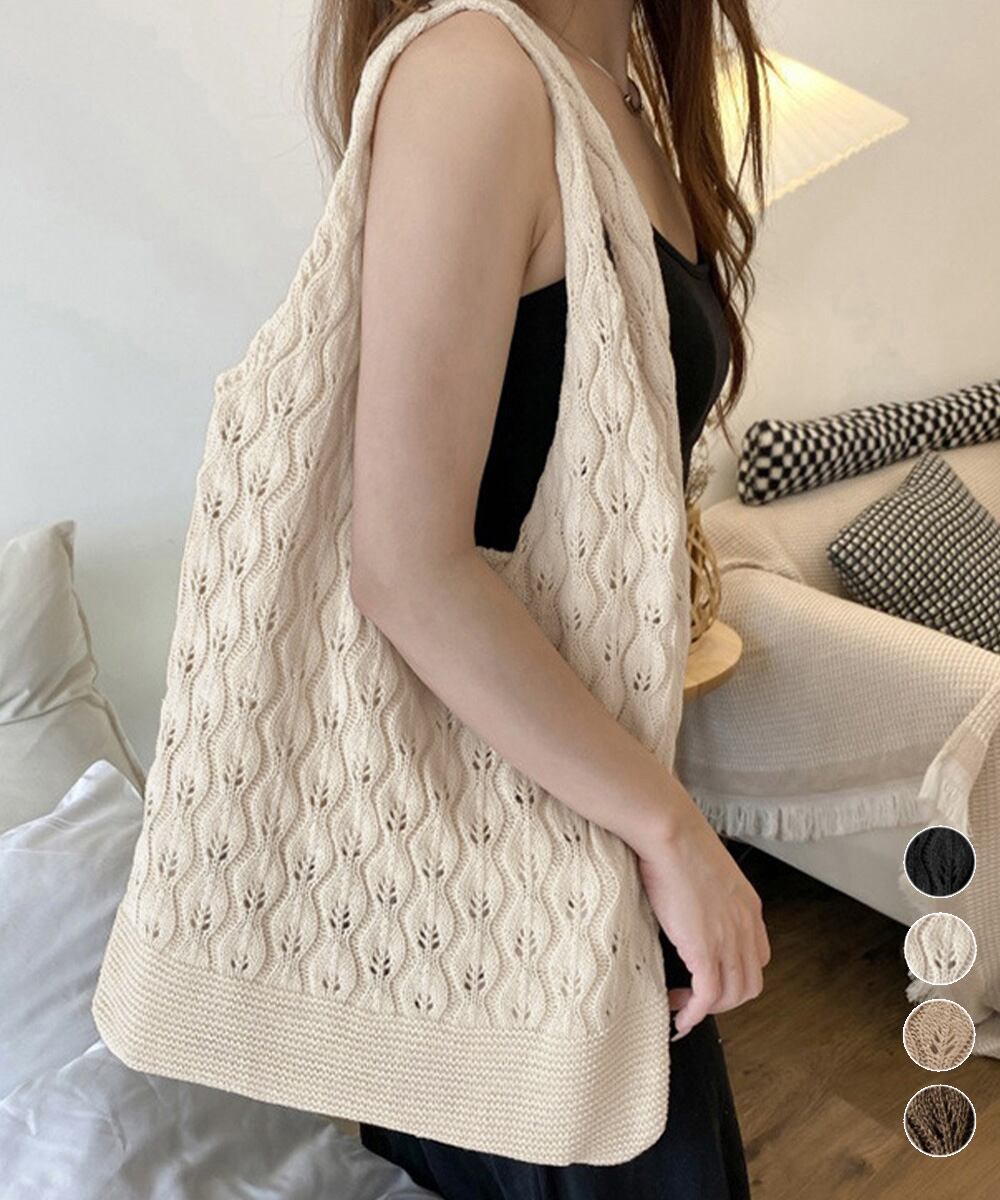 【日本倉庫即納】 透かし編みニットバッグ韓国風トートバッグ