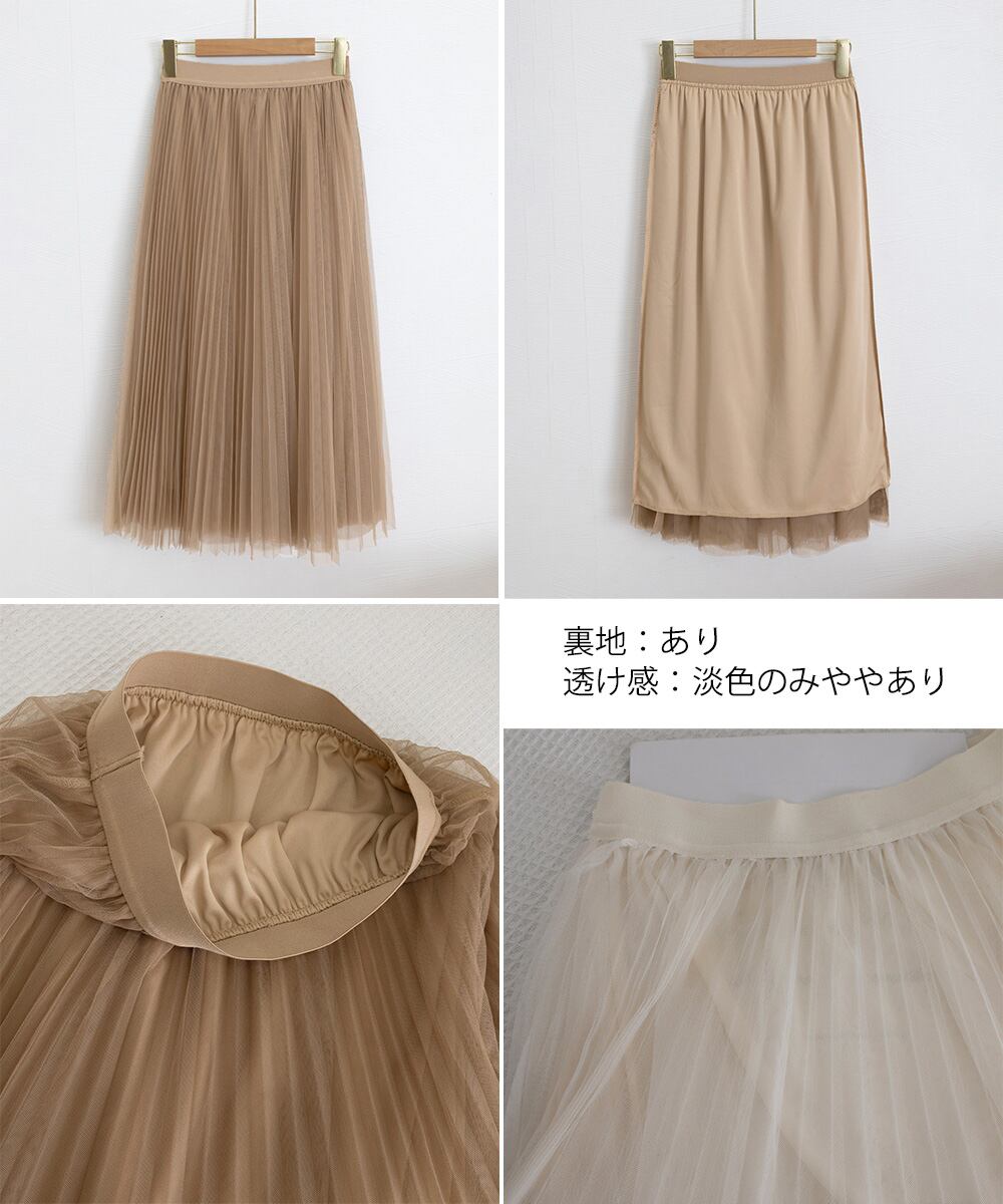 軽やかなチュール素材を使用した、プリーツデザインのロングスカート。