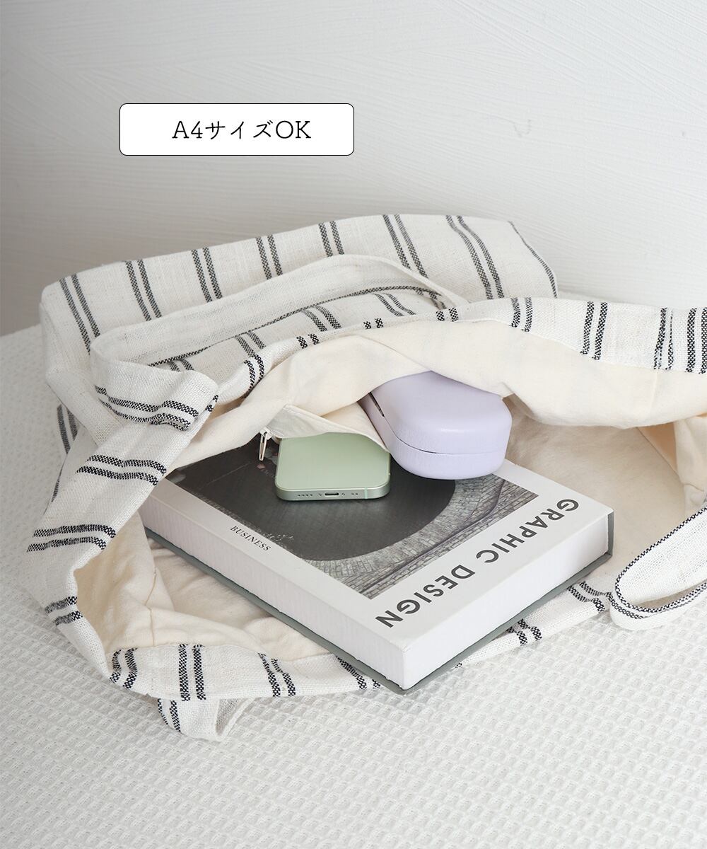 ナチュラルな風合いが魅力のストライプ柄トートバッグ。