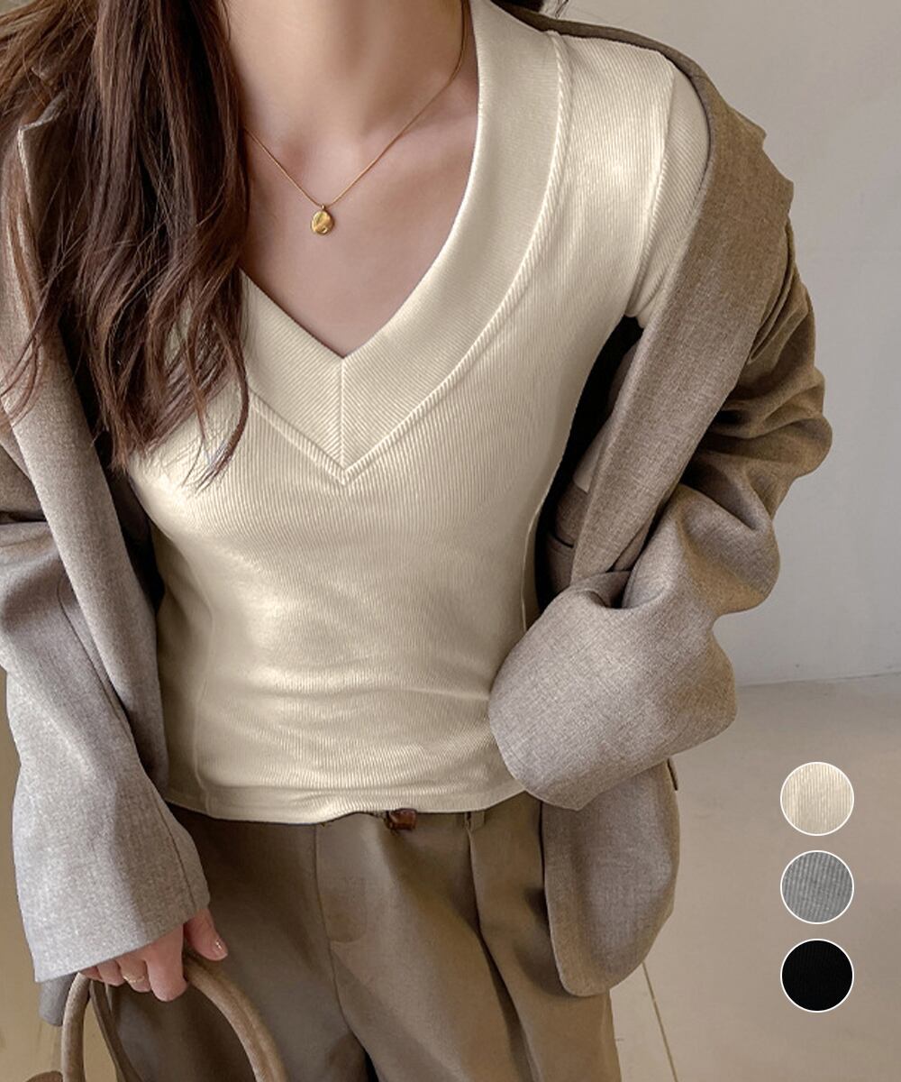インナーとしてはもちろん、一枚でも着やすいベーシックアイテム。