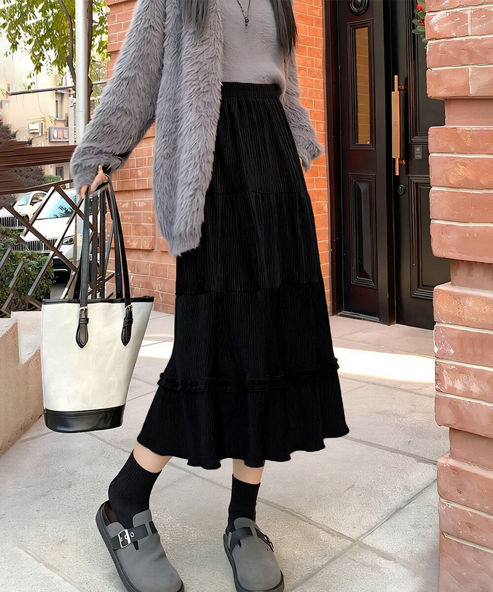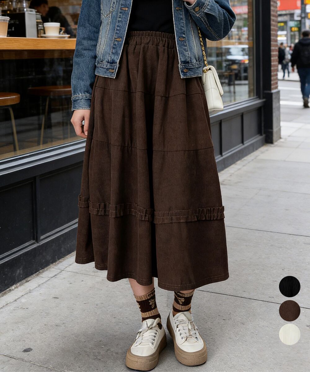 【日本倉庫即納】 ティアードスカート コーデュロイスカート