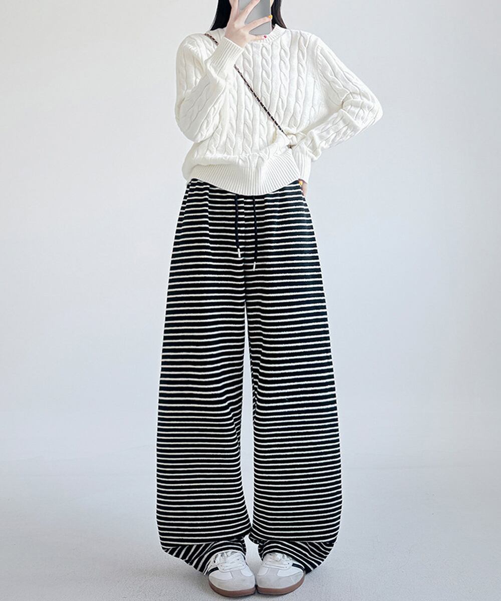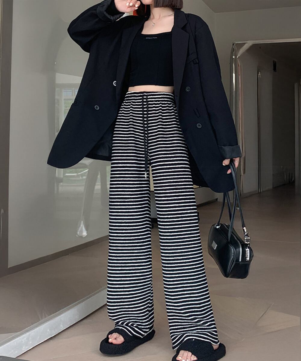 【日本倉庫即納】 イージーパンツ ロング丈 ボーダー 新作