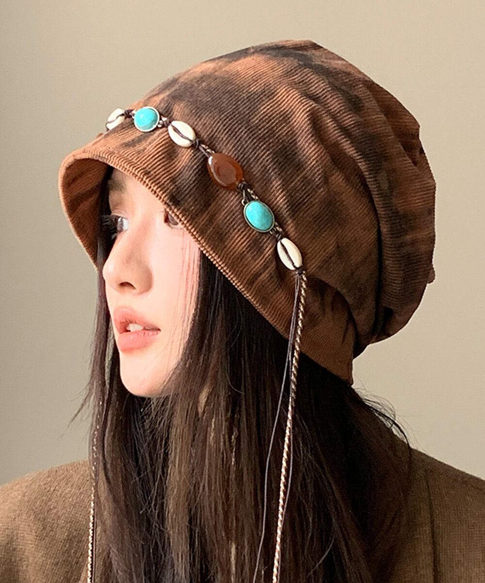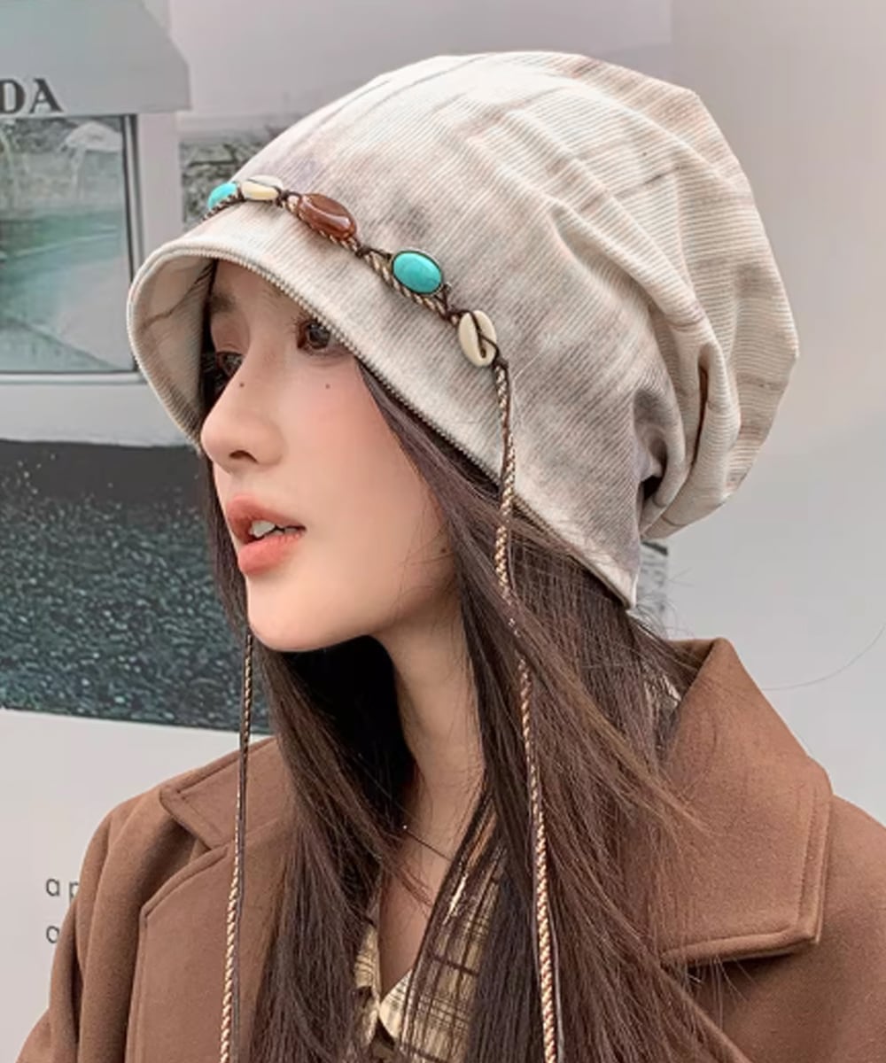 柔らかな生地感に、装飾コードをあしらったデザインのルーズキャップ。