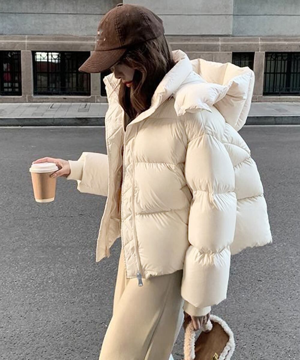 軽くて暖かい中綿仕様で、首元までしっかり包み込み、冬の外出も快適。