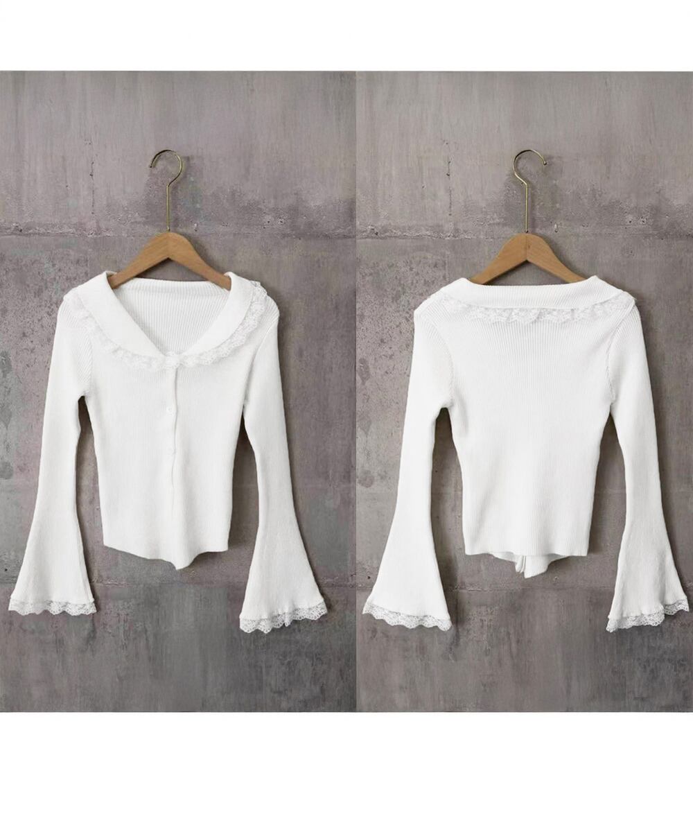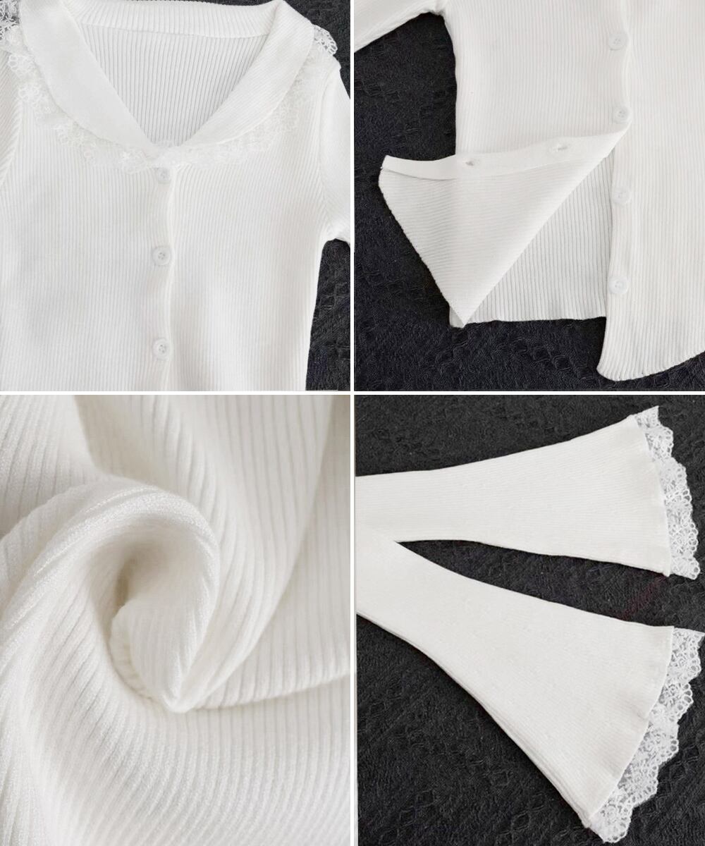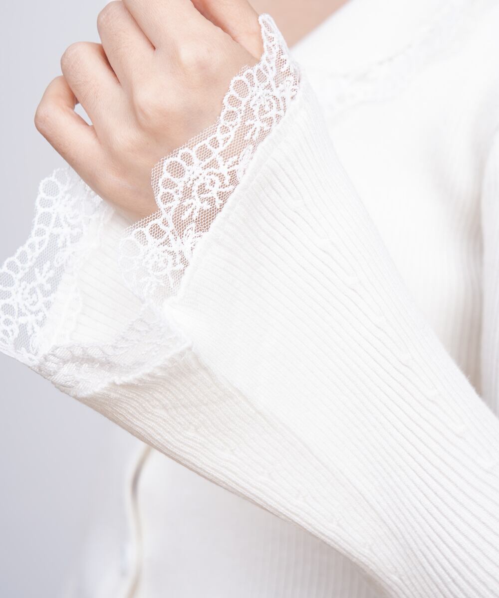 繊細なレース使いが目を惹く、フェミニンムードたっぷりのリブニットトップス。