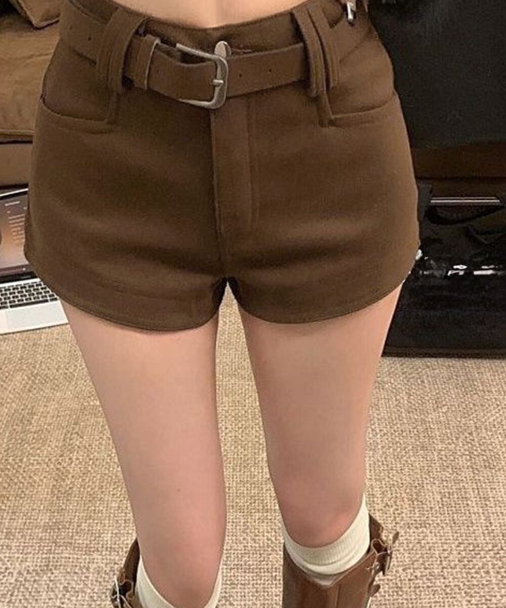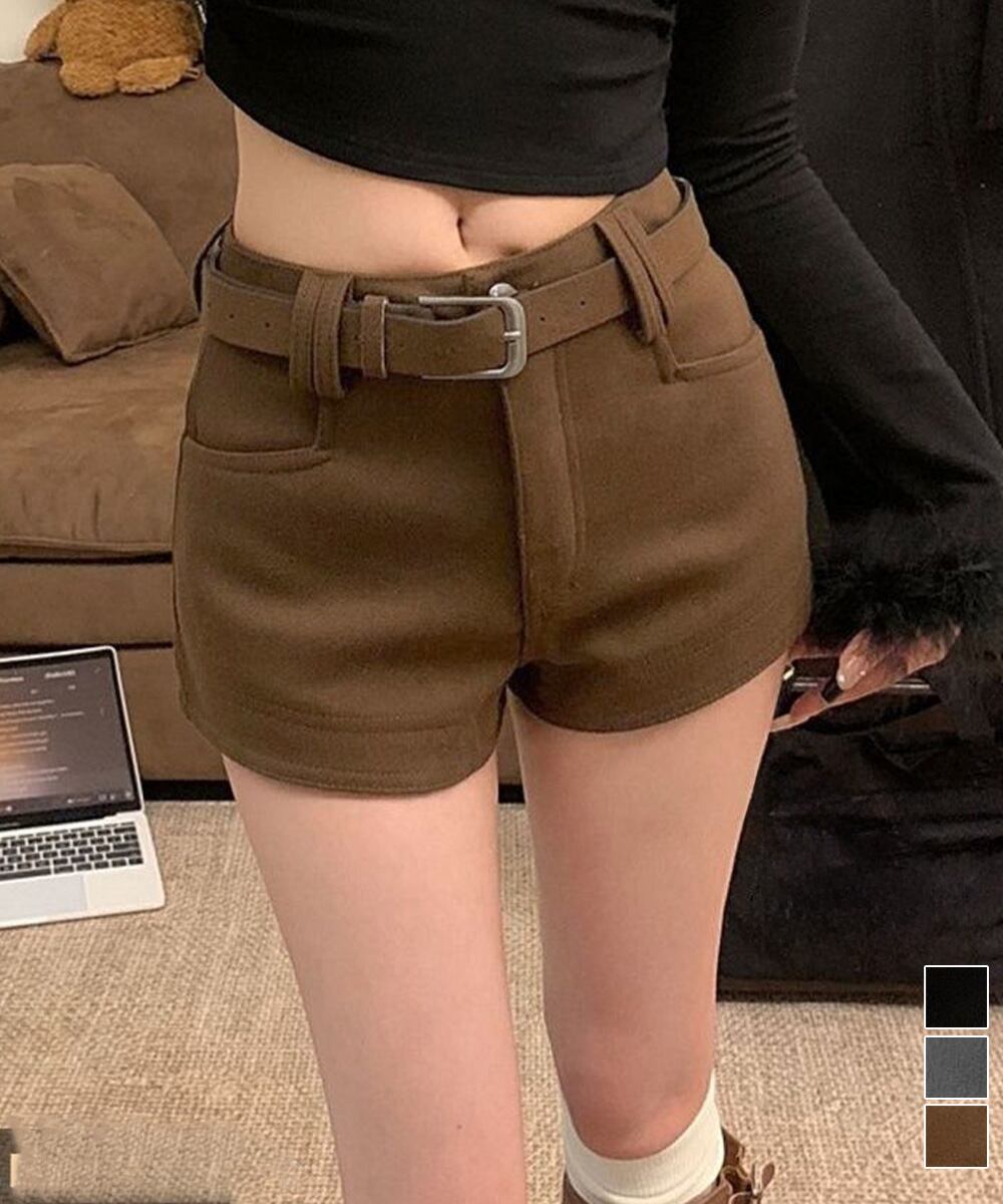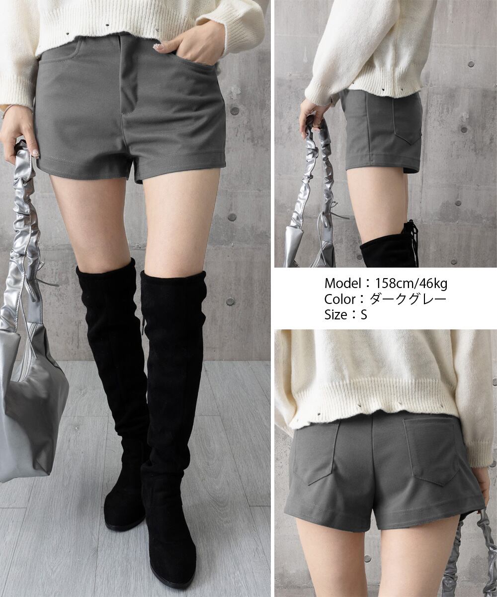 【日本倉庫即納】 ウール風ショートパンツハイウエスト短パン