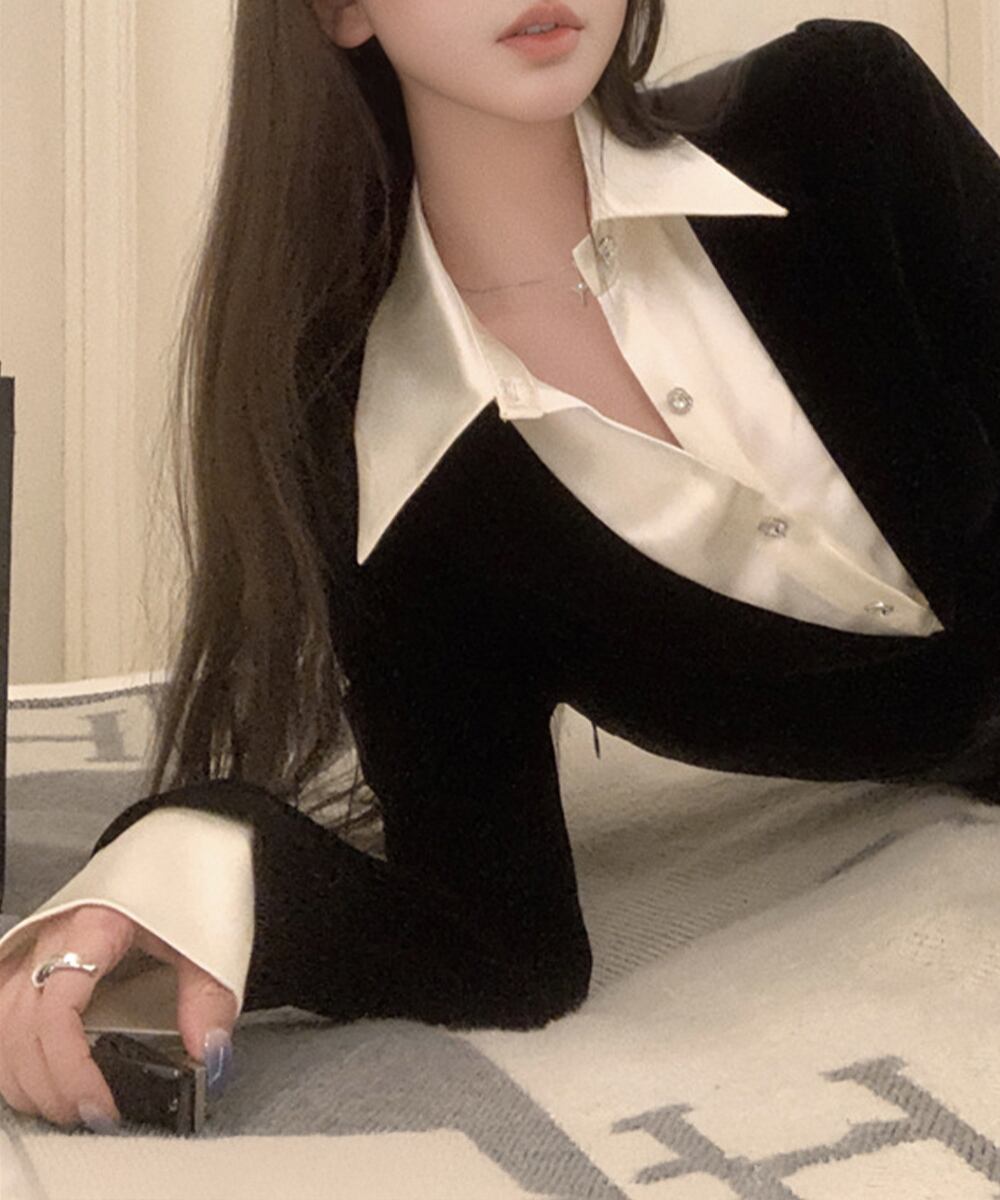 シャツとワンピースを組み合わせたフェイクレイヤードデザインで、一枚でおしゃれなスタイリングが完成。