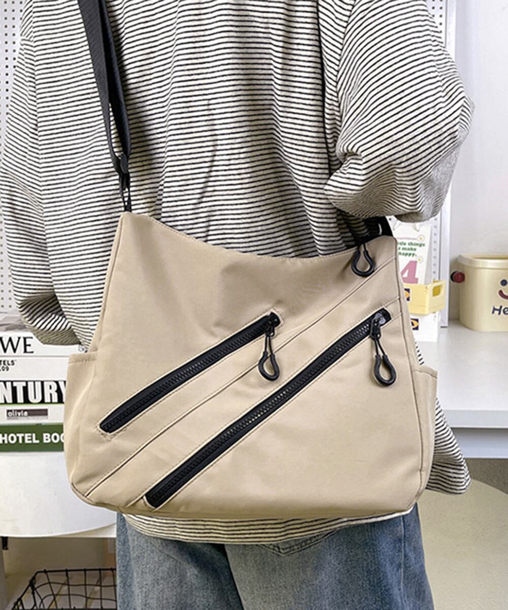 ナイロンバッグ 2WAY 斜めがけ ユニセックス 軽量かばん カジュアル 肩掛けバッグ ファスナー開閉 ワンショルダー鞄