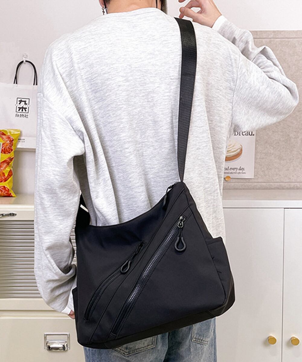 軽量で丈夫なナイロン素材を使用した、男女兼用ショルダーバッグ。