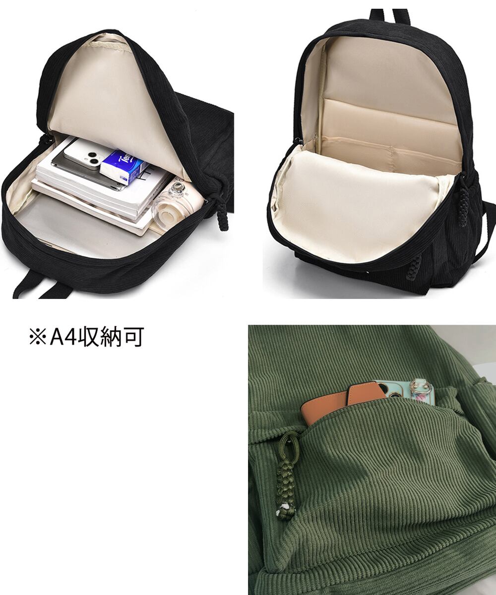 コーデュロイリュック A4対応 デイリーバックパック 軽量 韓国風 ユニセックスかばん 大人カジュアル 通勤通学 カバン