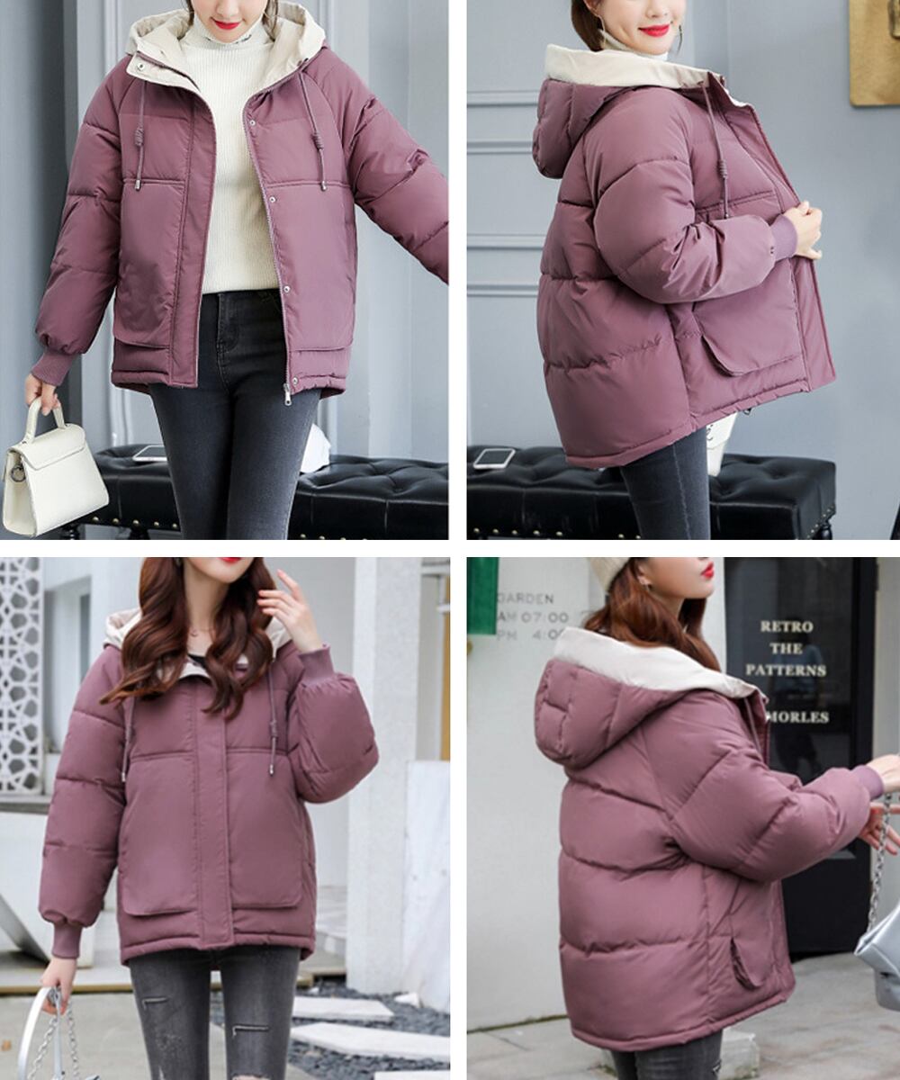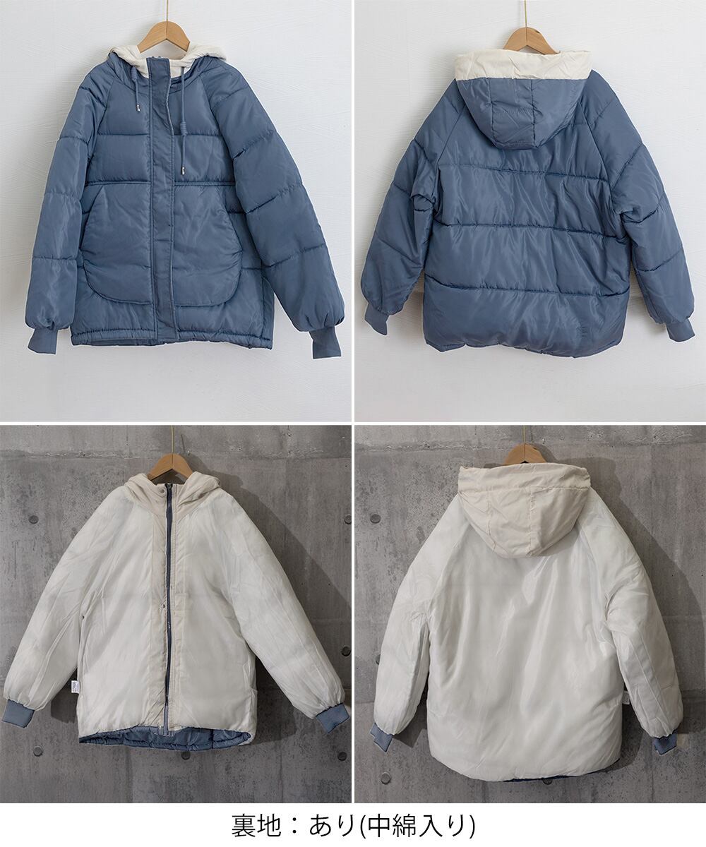 【日本倉庫即納】 配色フード付き中綿ジャケットレディース冬