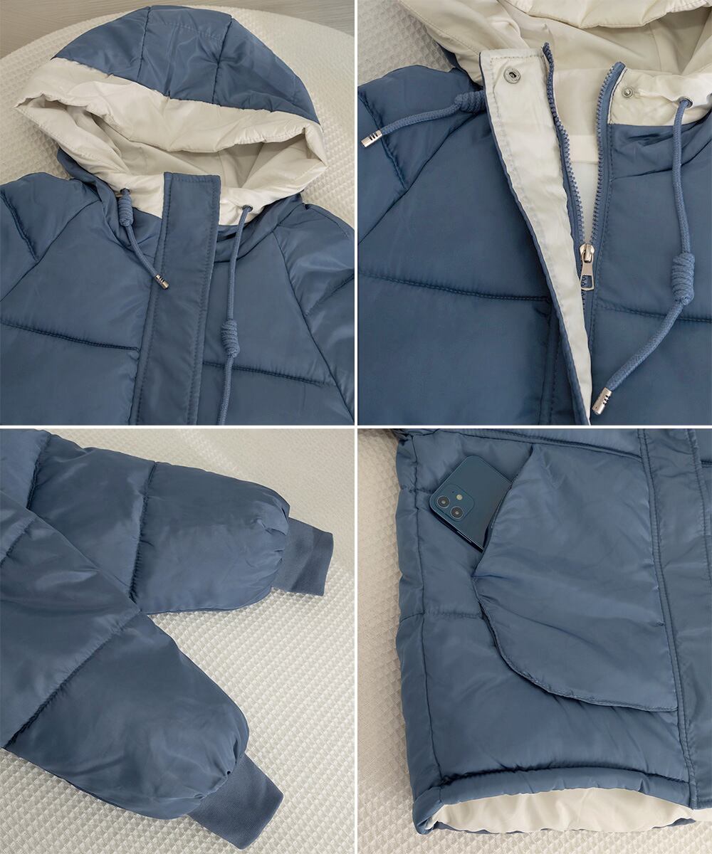 バイカラーエコダウンジャケット 韓国風フェイクダウンコート 暖かブルゾン 防寒防風キルティングジャケットフーディアウター