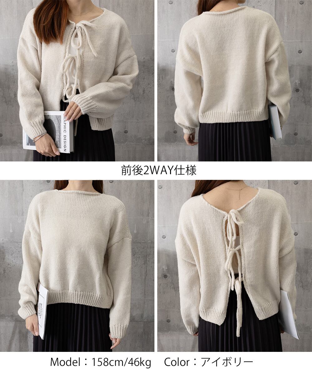 【日本倉庫即納】 リボンカーディガン前後2WAYニット春秋