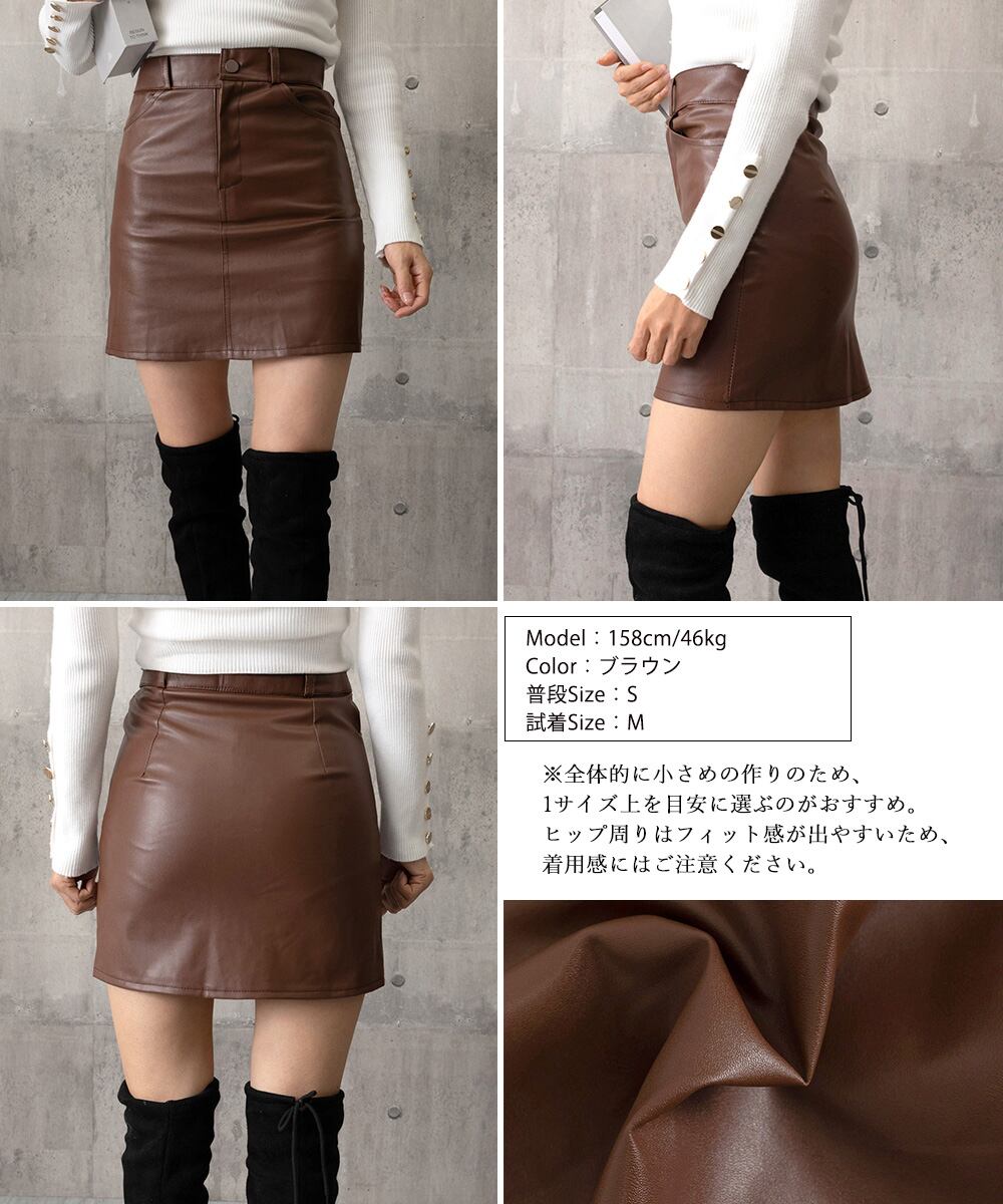 甘辛レザー風コンパクトなミニスカート。